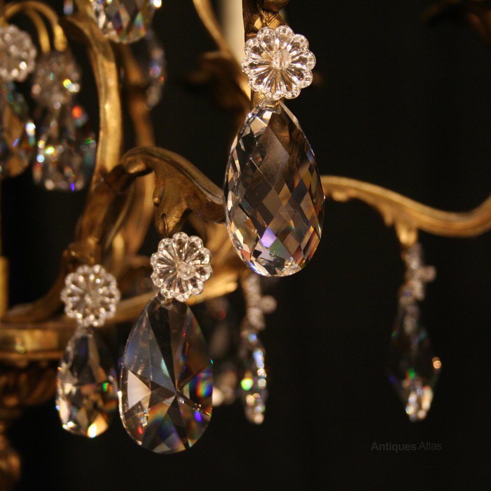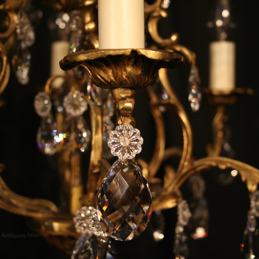 French Gilded Bronze 8 Light Antique Chandelier