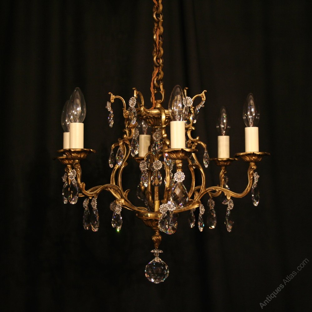 French Gilded Bronze 6 Light Antique Chandelier