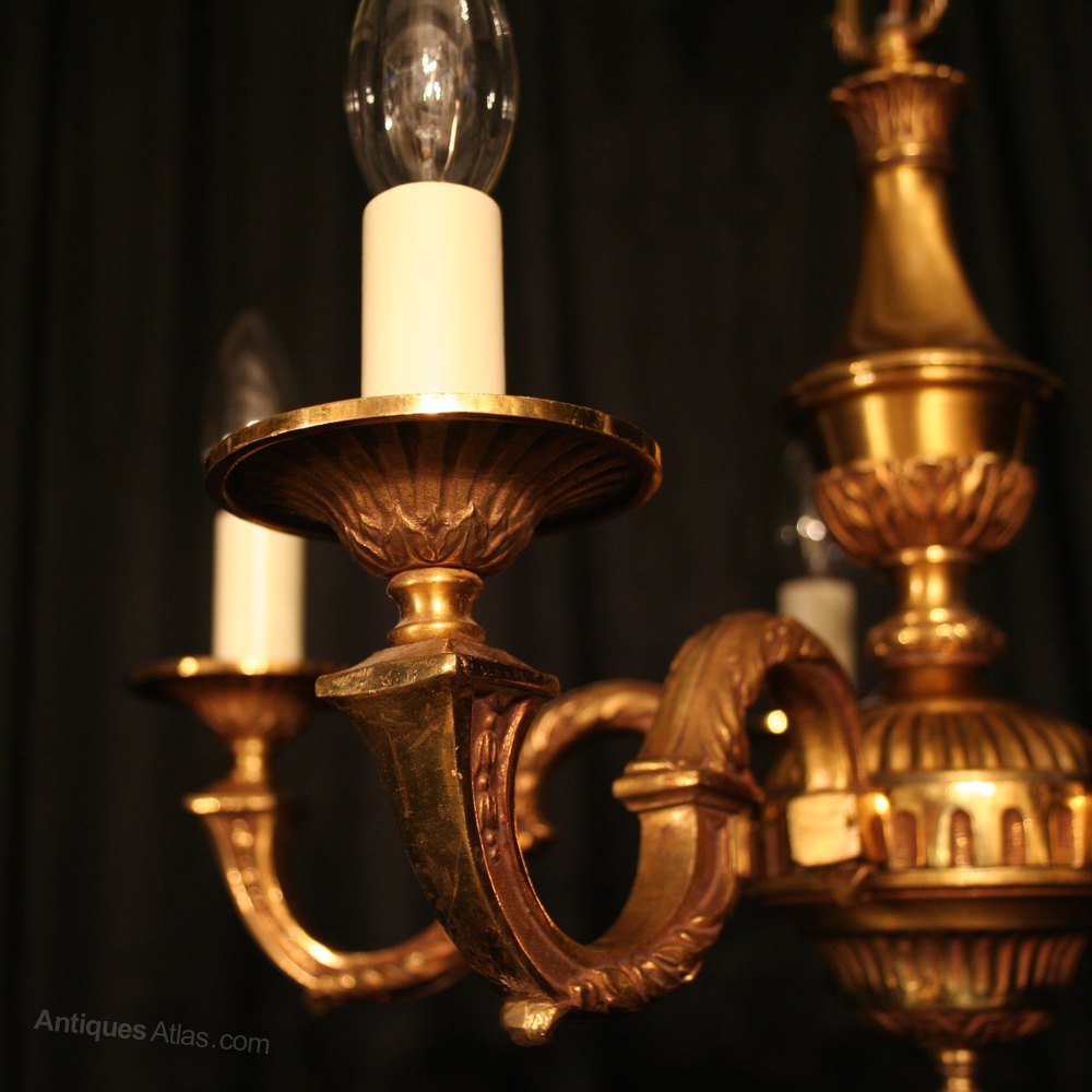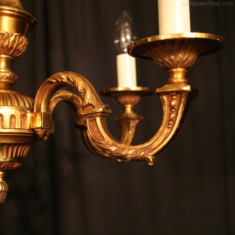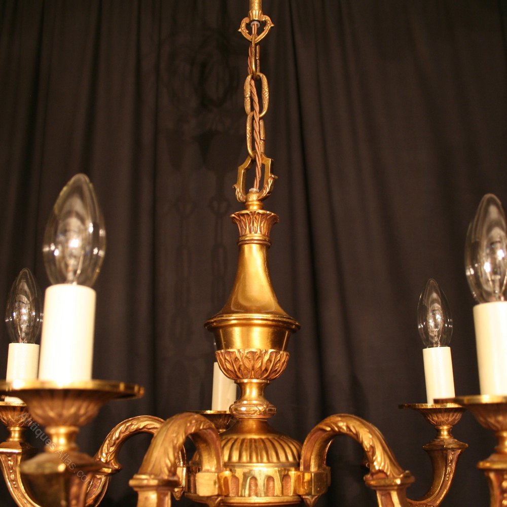 French 6 Light Gilded Bronze Antique Chandelier
