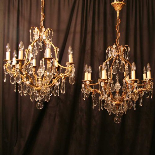 A French Pair Of 8 Light Antique Chandeliers