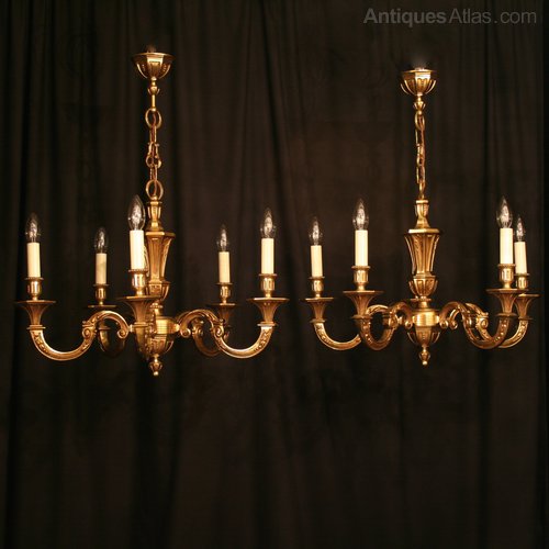 A French Pair Of Gilded 6 Light Chandeliers