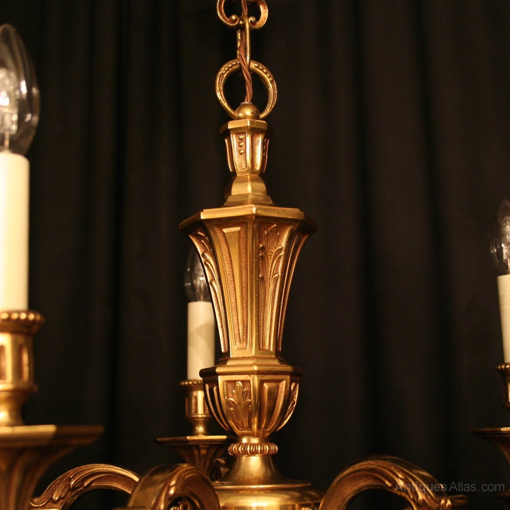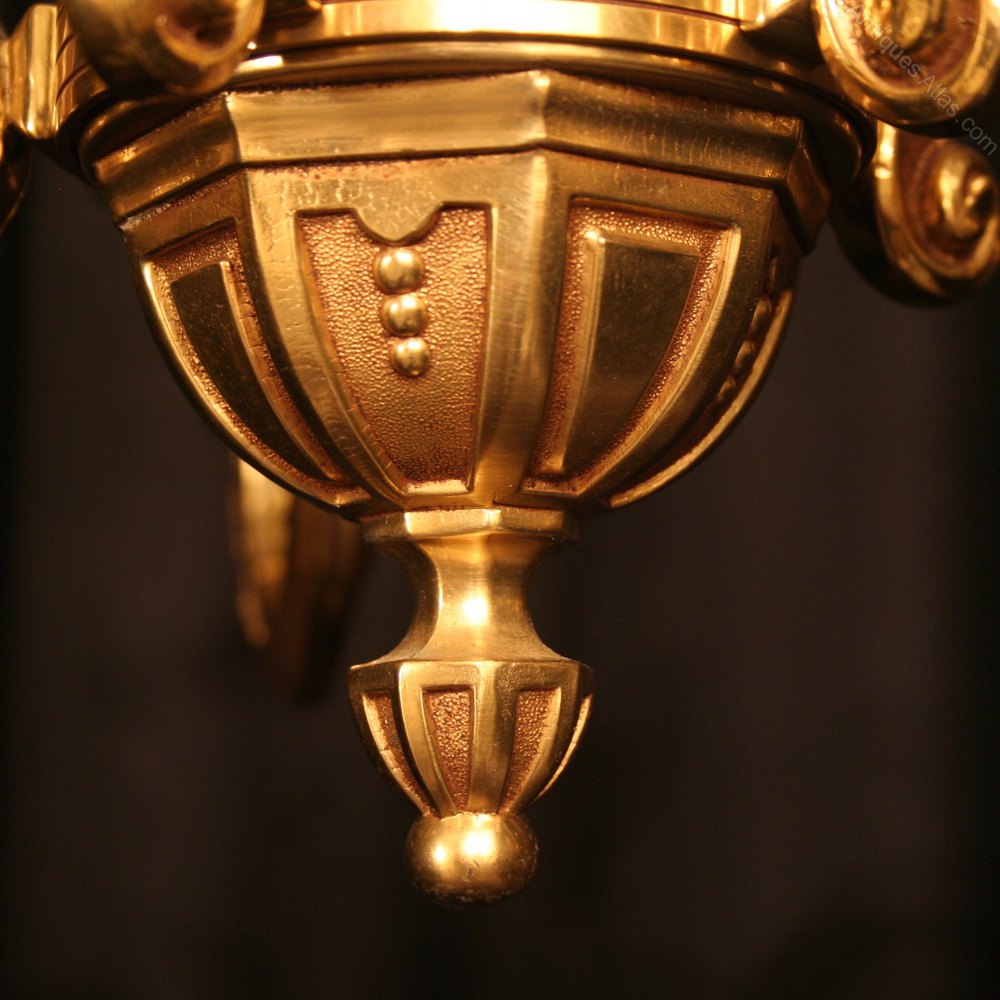 French Gilded Bronze 6 Light Antique Chandelier