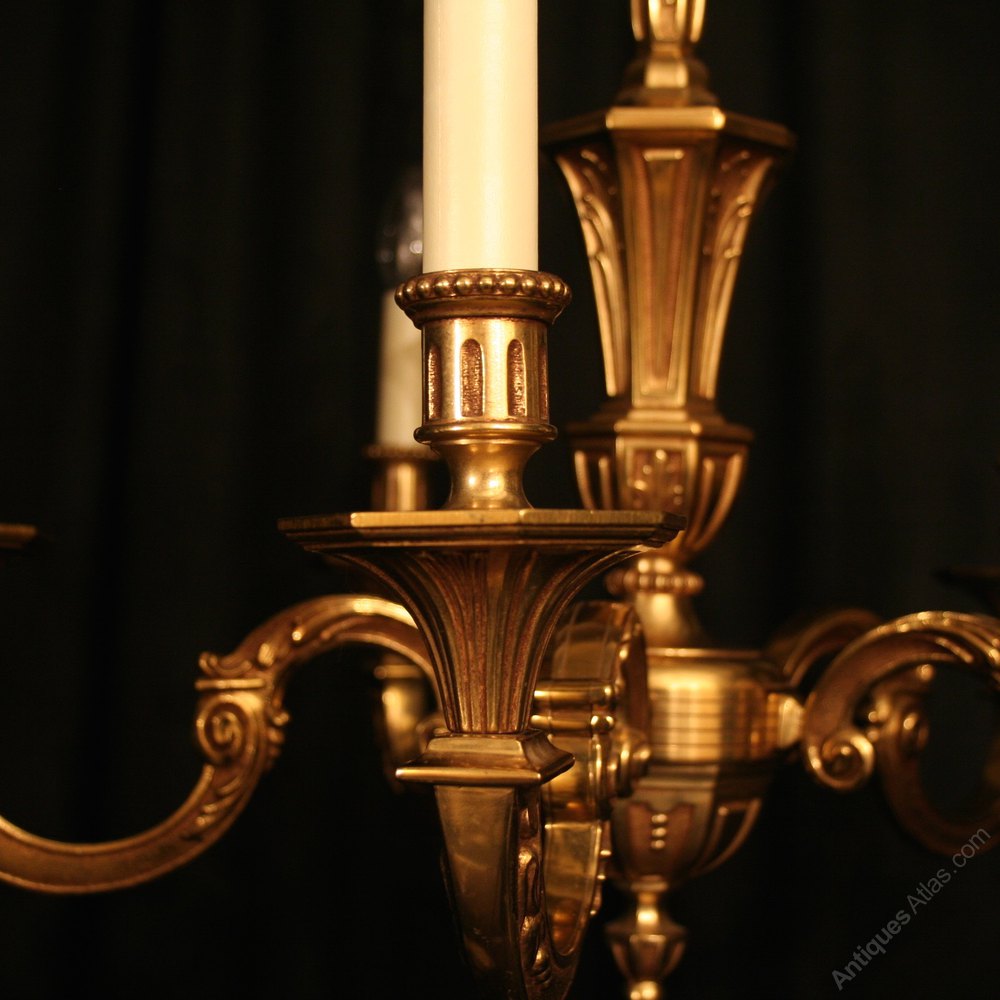 English Gilded Brass 5 Light Antique Chandelier