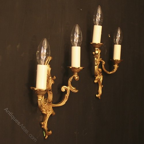 French Pair Of Gilded Bronze Antique Wall Lights