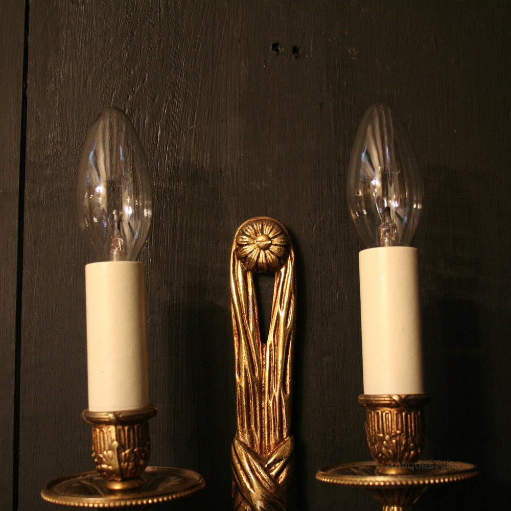 French Pair Of Gilded Twin Arm Wall Lights