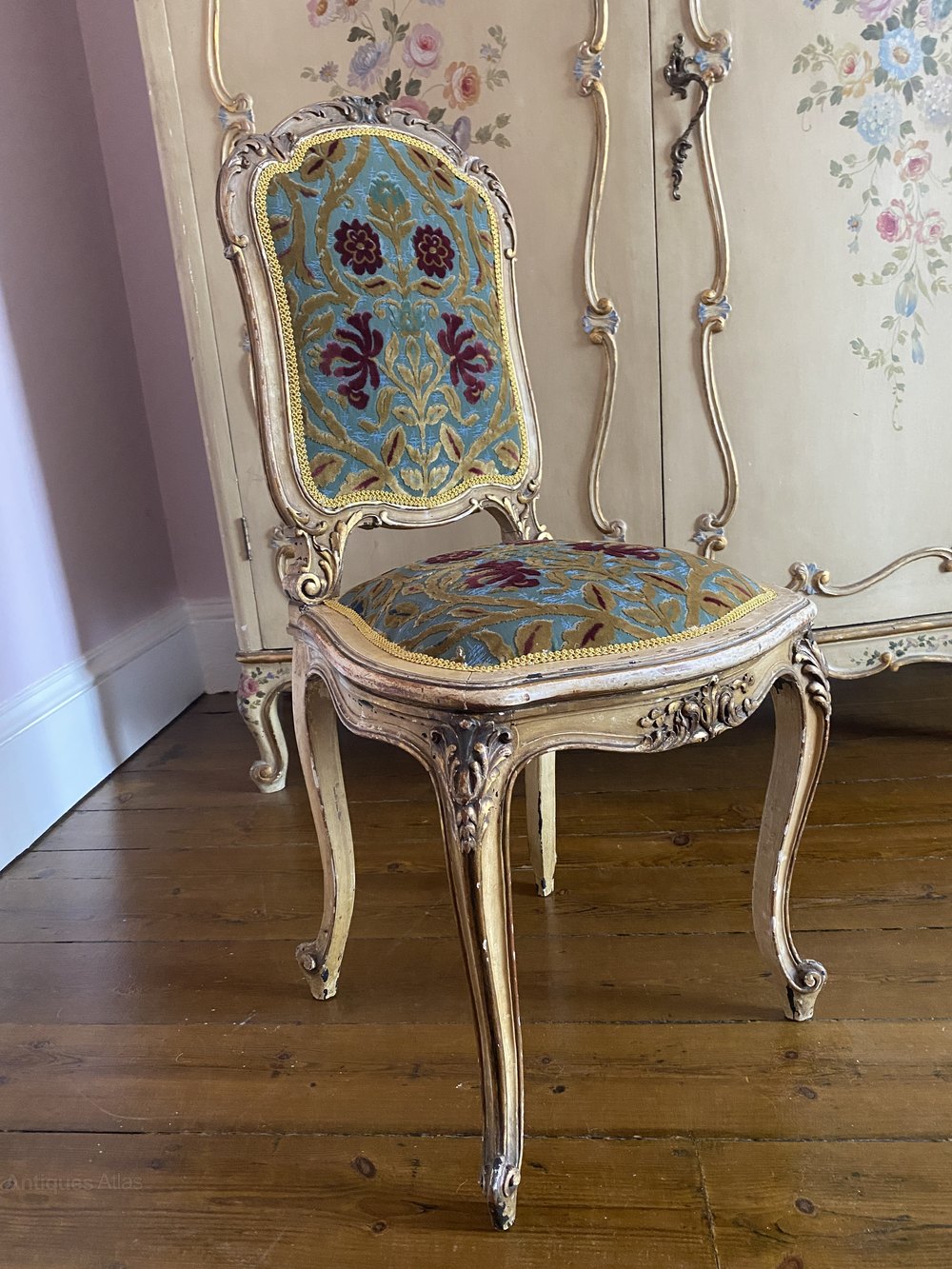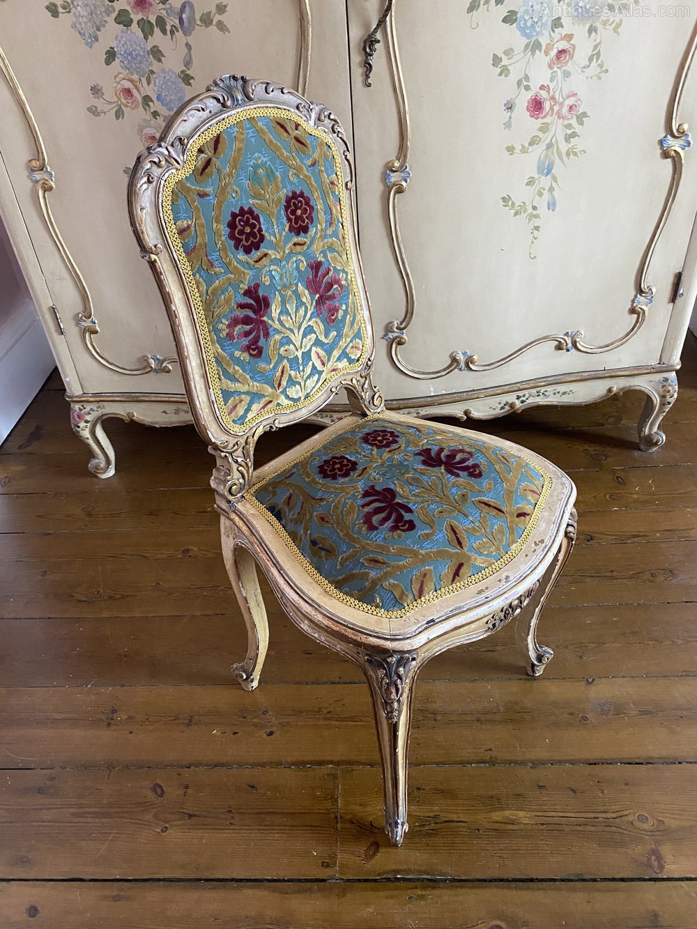 A divine little French salon chair c 1880, lovely carved detailed frame in untouched condition. Nice and solid with no movement. Recently recovered in Watts of Westminster Isla fabric in teal.