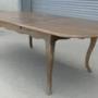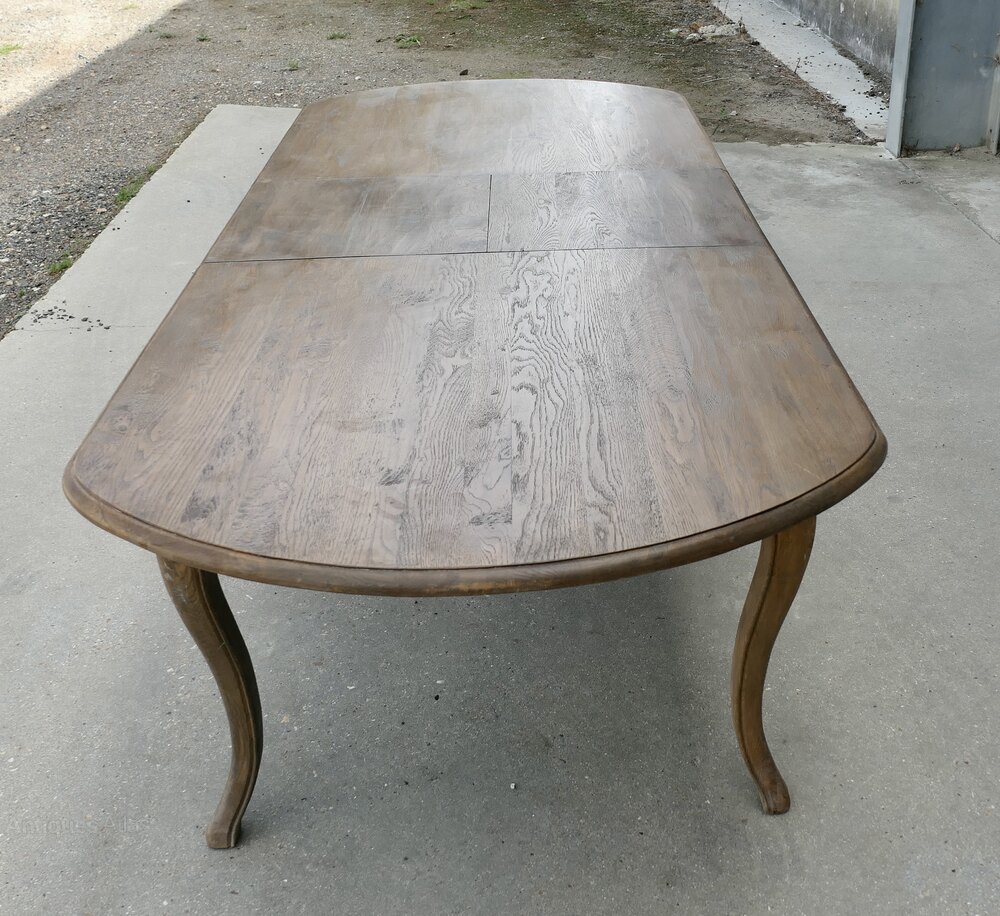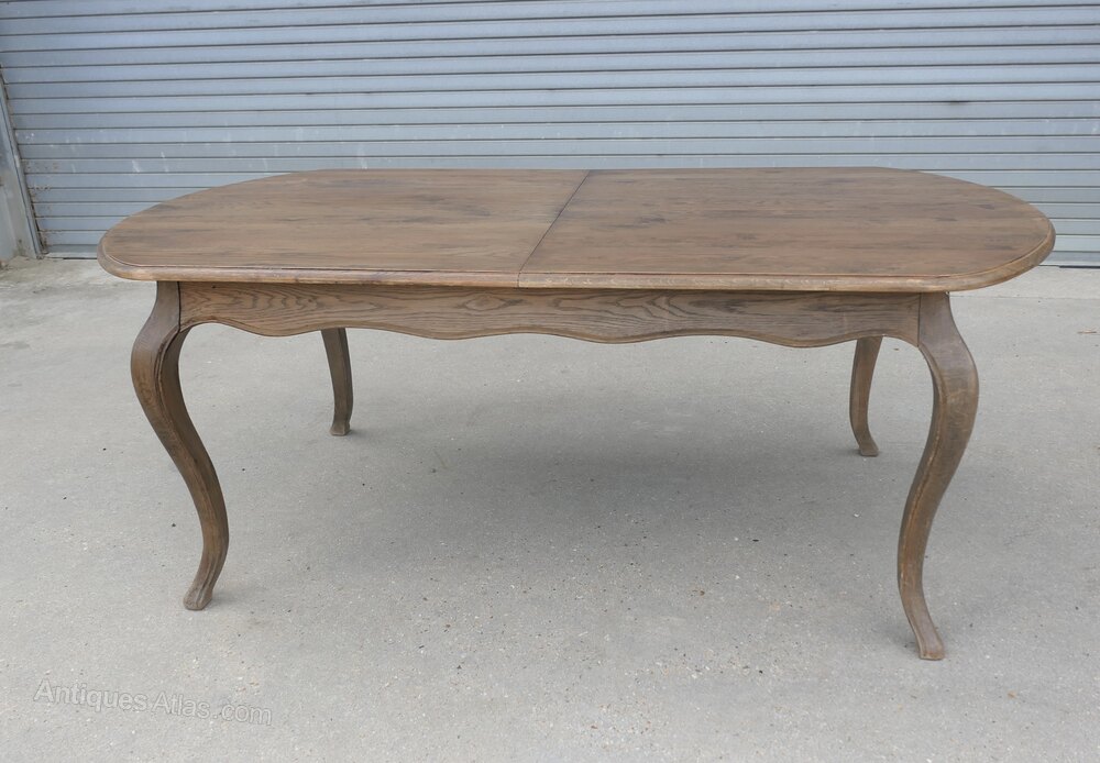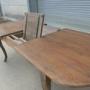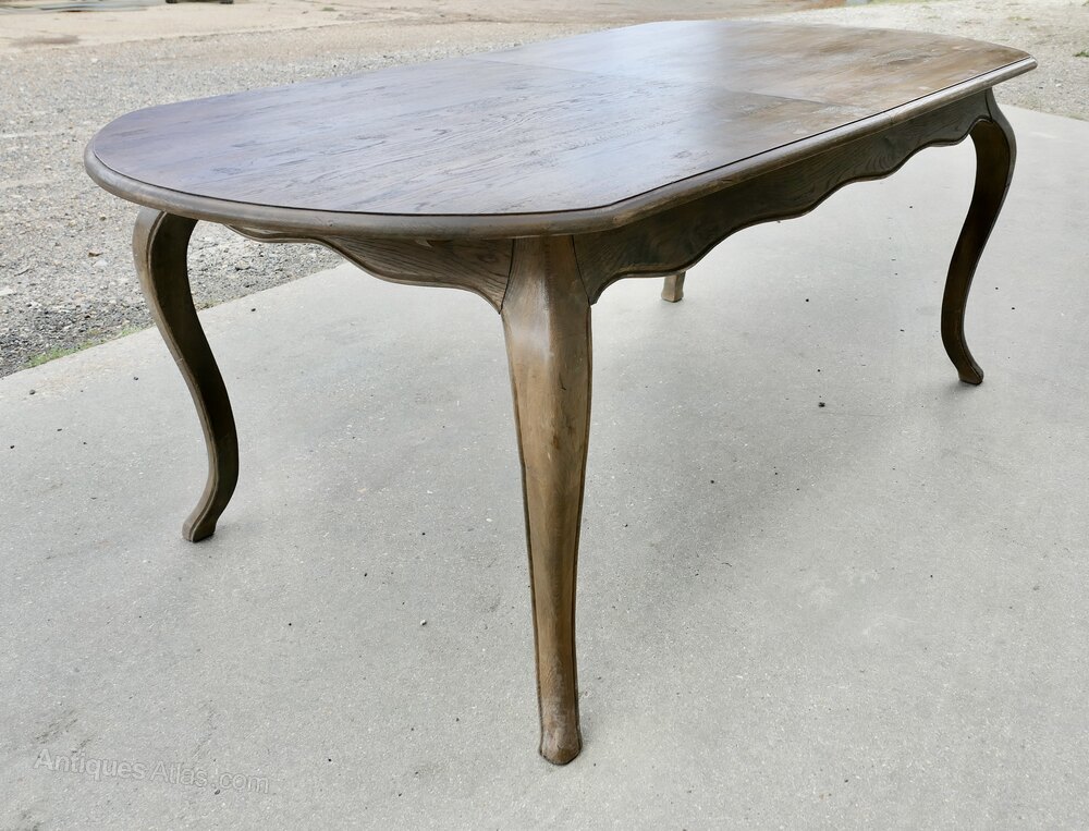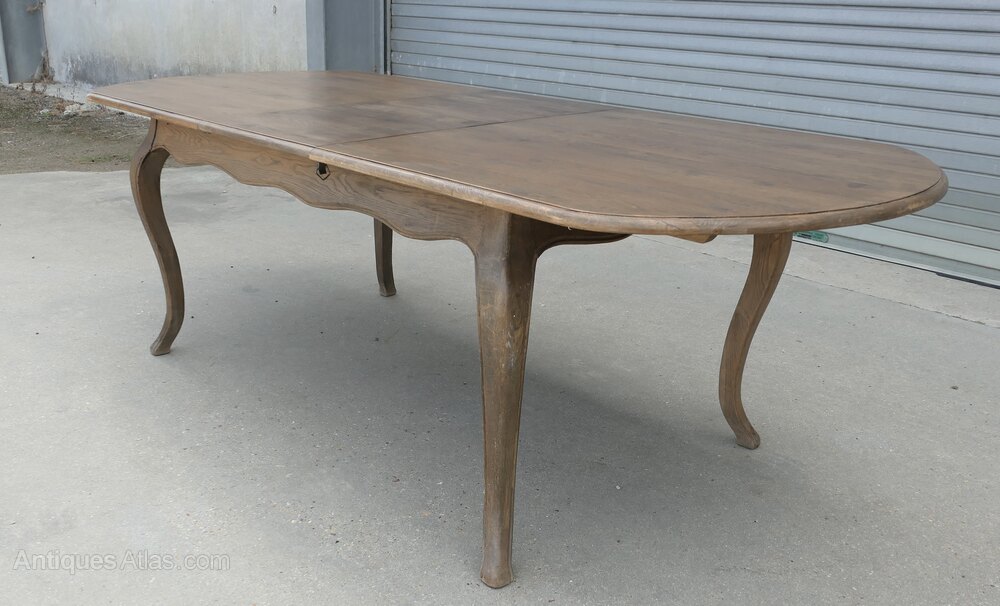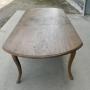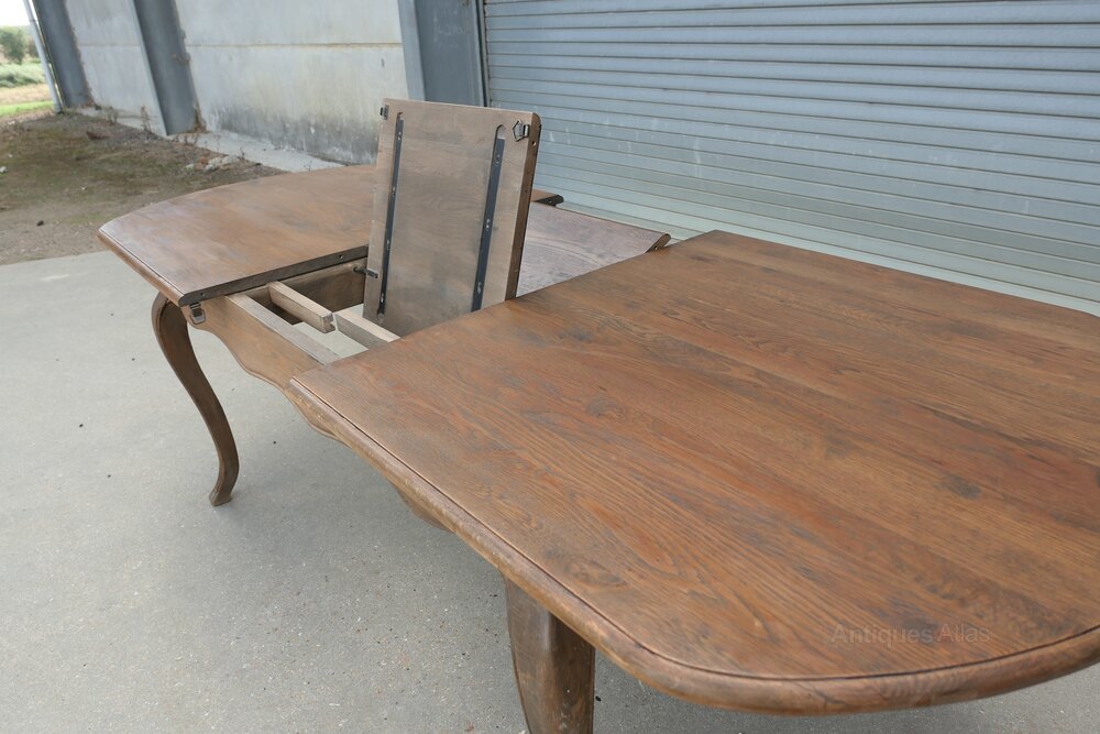 This table comes from France the table top extends by pulling each end away and allowing the centre leaf to pop up from the centre, it is then pushed back together and fastened by small clips beneath.