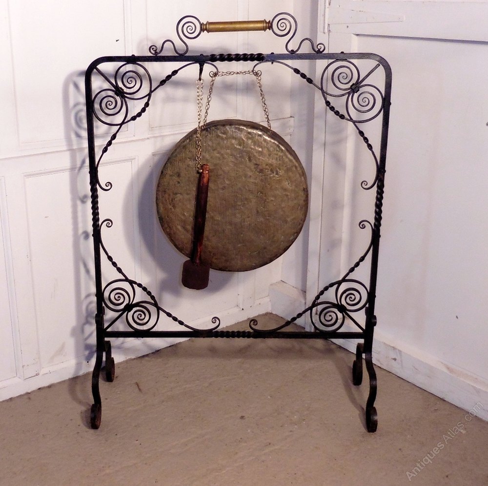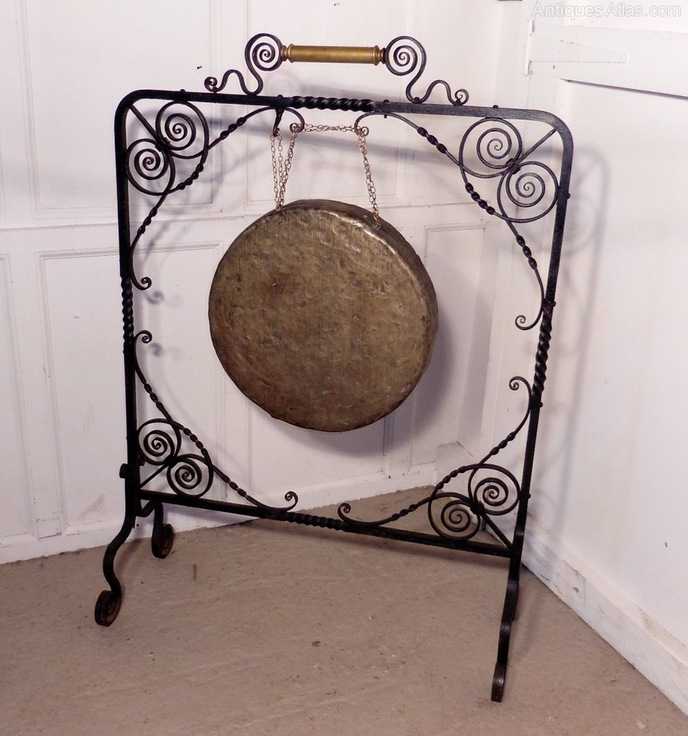 This is a large piece the Brass Gong is hand beaten brass suspended in a beautiful wrought Iron frame