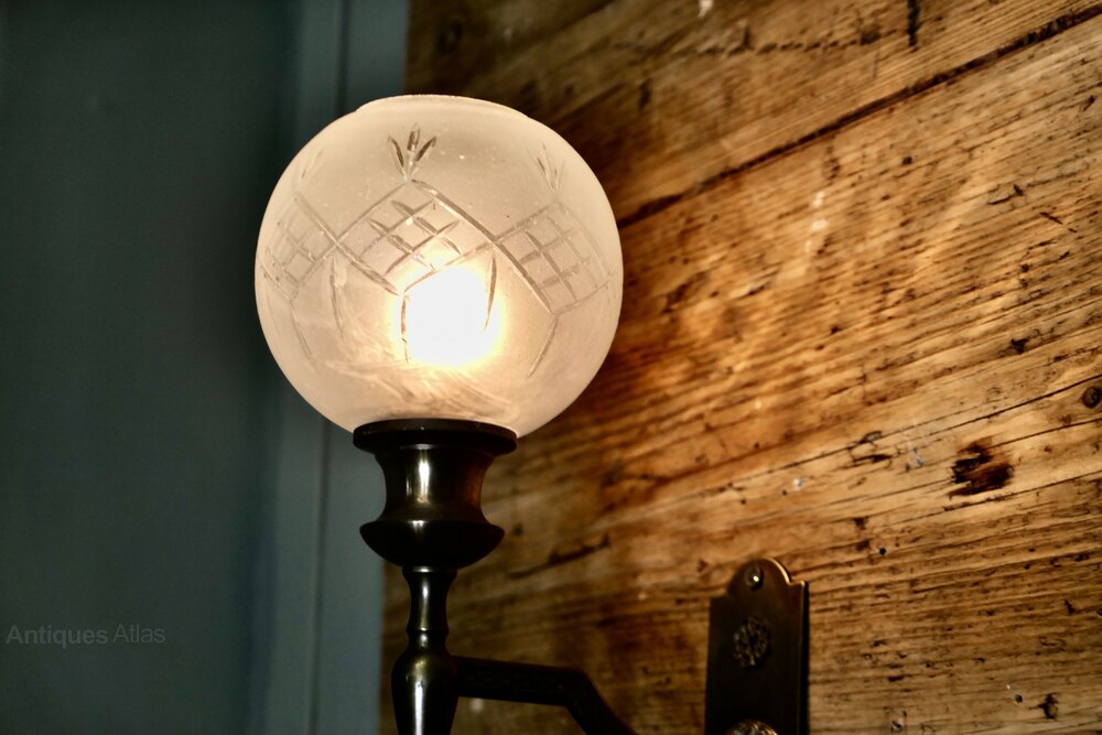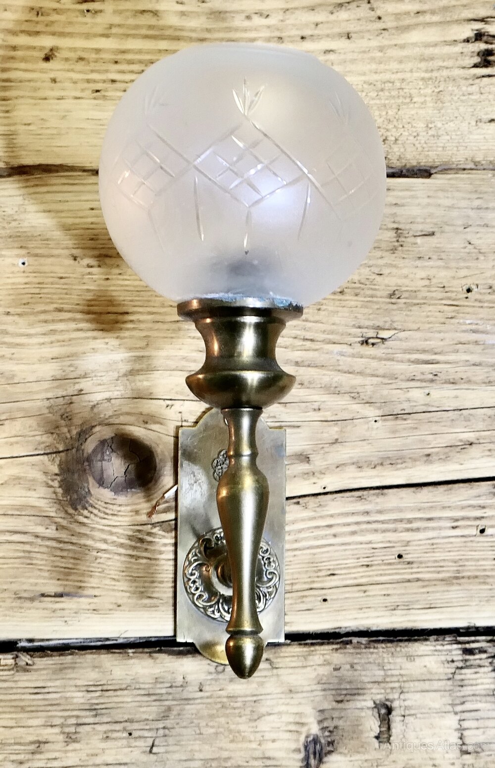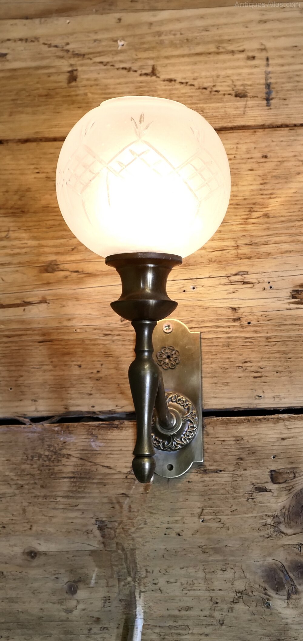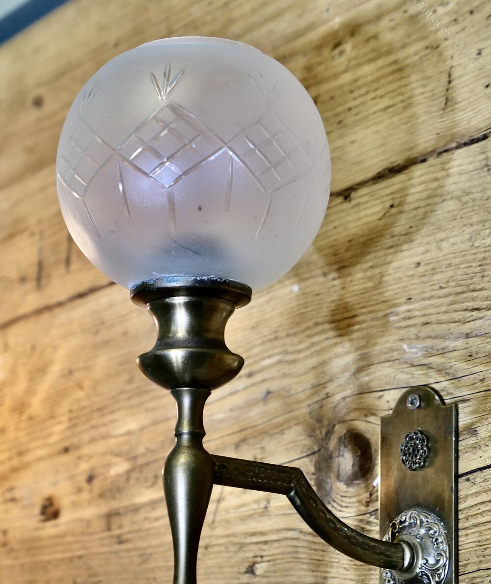 A pair of Art Deco Etched Glass Globe Wall Lights