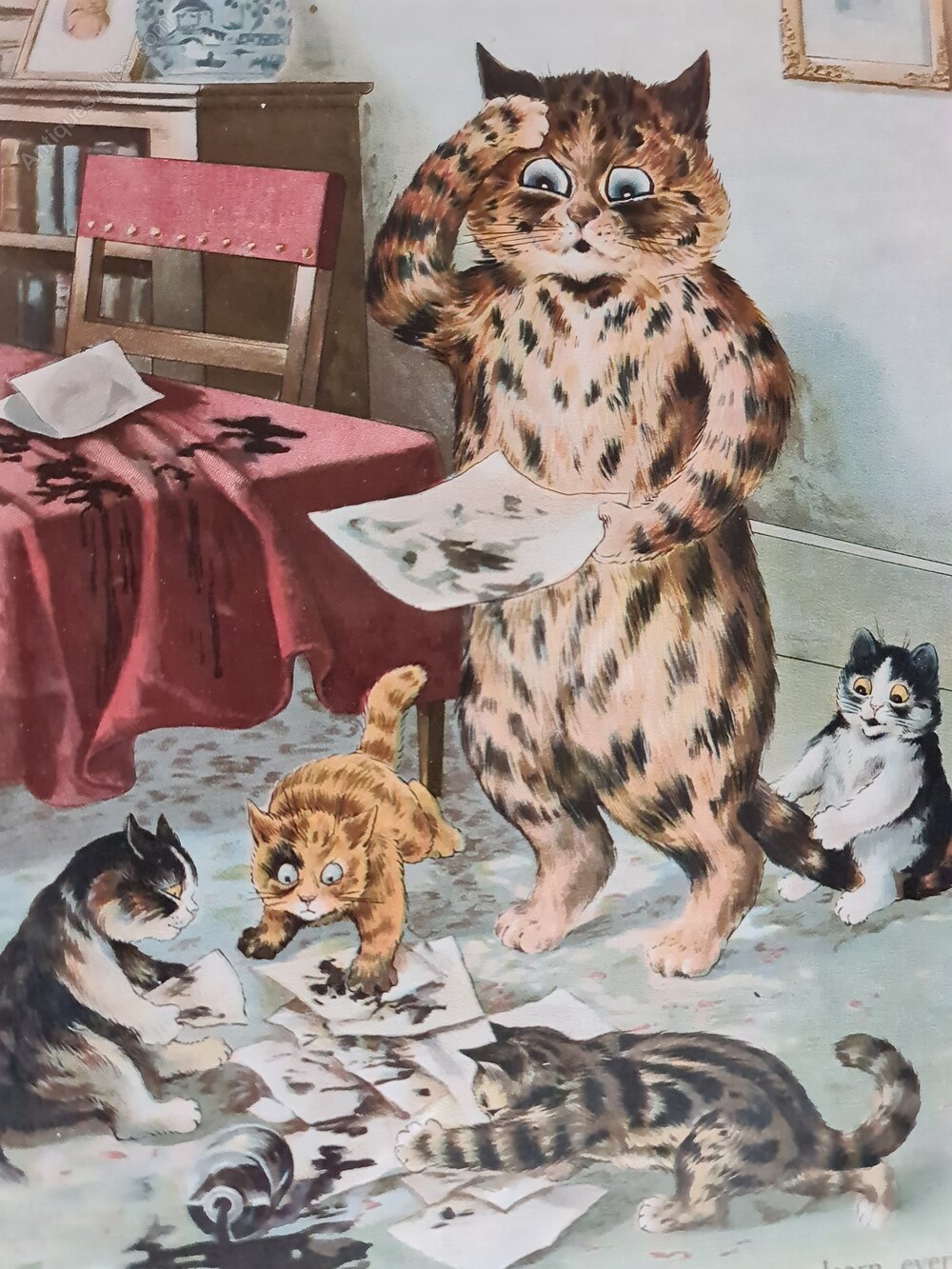 Wonderful colours and great detail. One titled 'The Governess', the other 'There's a Mouse in the Corner'. Newly re-framed.