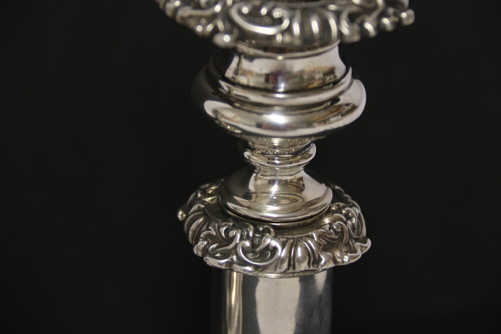 Pair of silver Corinthian column candle stick