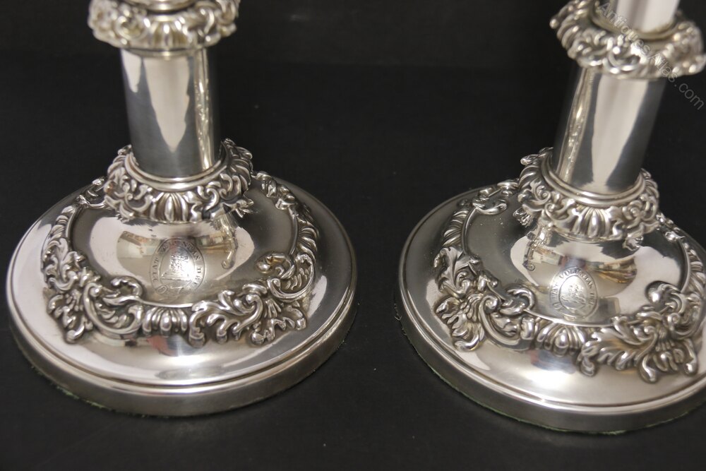 Pair Of Antique Decorative Candlesticks, English