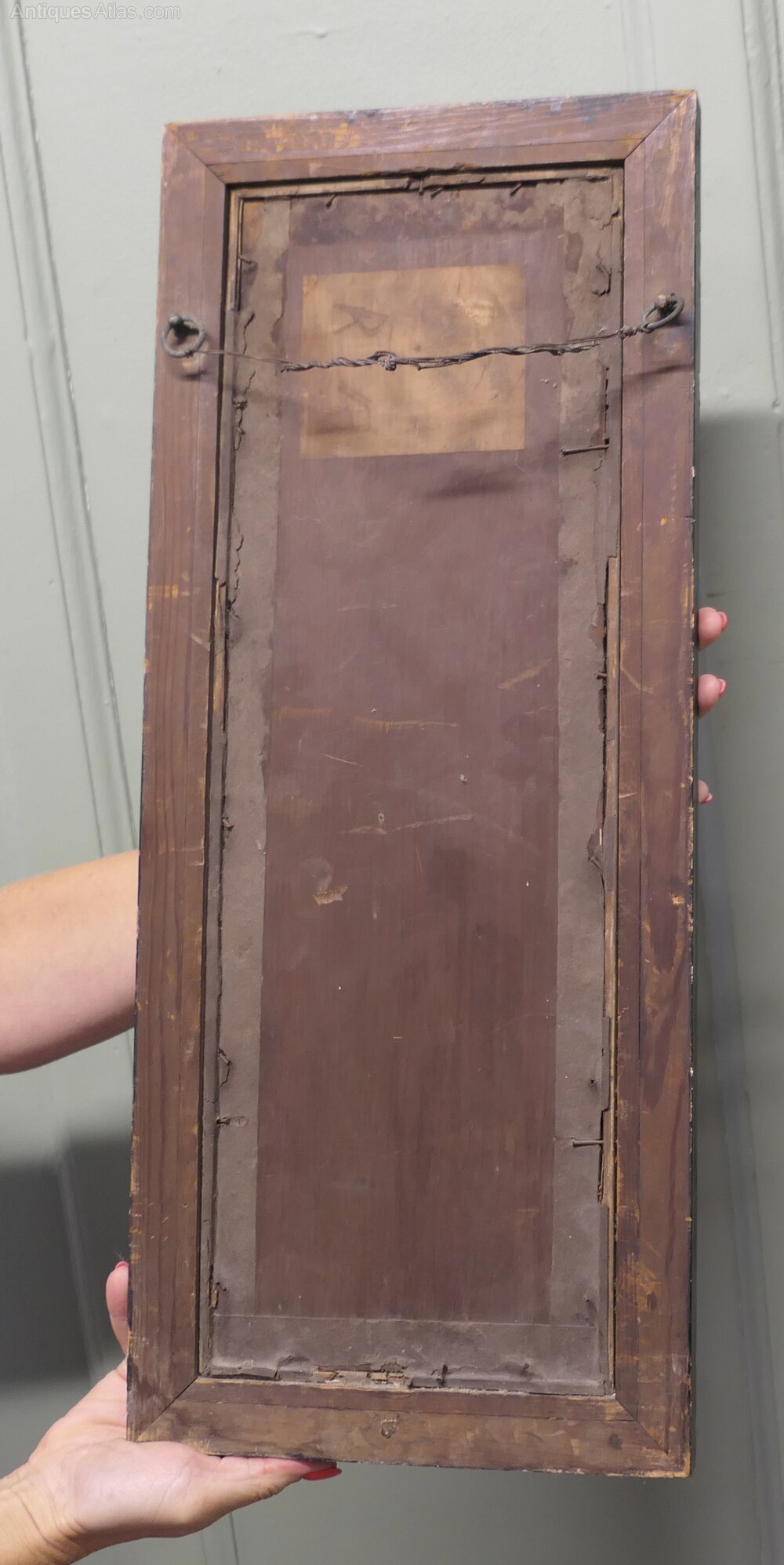This is a 19th century print preserved in its original frame, 25” tall and 10” wide