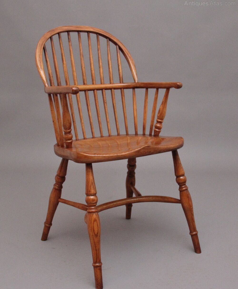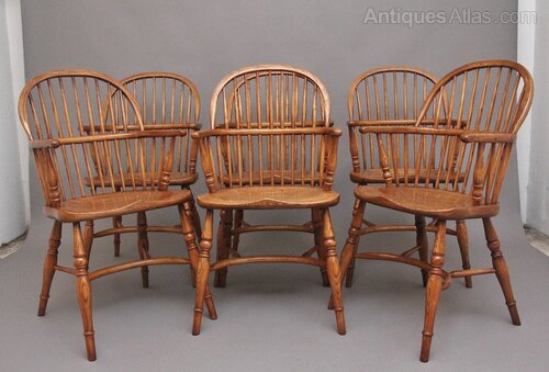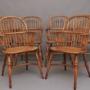 A lovely set of six mid 20th Century stick back Windsor armchairs in ash with an elm seat, having a saddle seat, turned legs and united by a shaped stretcher, all in excellent condition and having a lovely rich colour. Circa 1960.