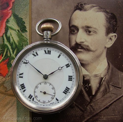The watch measures 50.5mm diameter excluding the winding stem and the loop. The case is silver and there are silver import marks inside the case back for London with the importers mark W.H.S (William Henry Sparrow) the marks on the inside of the case back are worn although they are crisp on the inner case back . The case has a mild bruising to the back but overall is in good condition. The inner case back is inscribed W.Bradford from his workmates 1934.