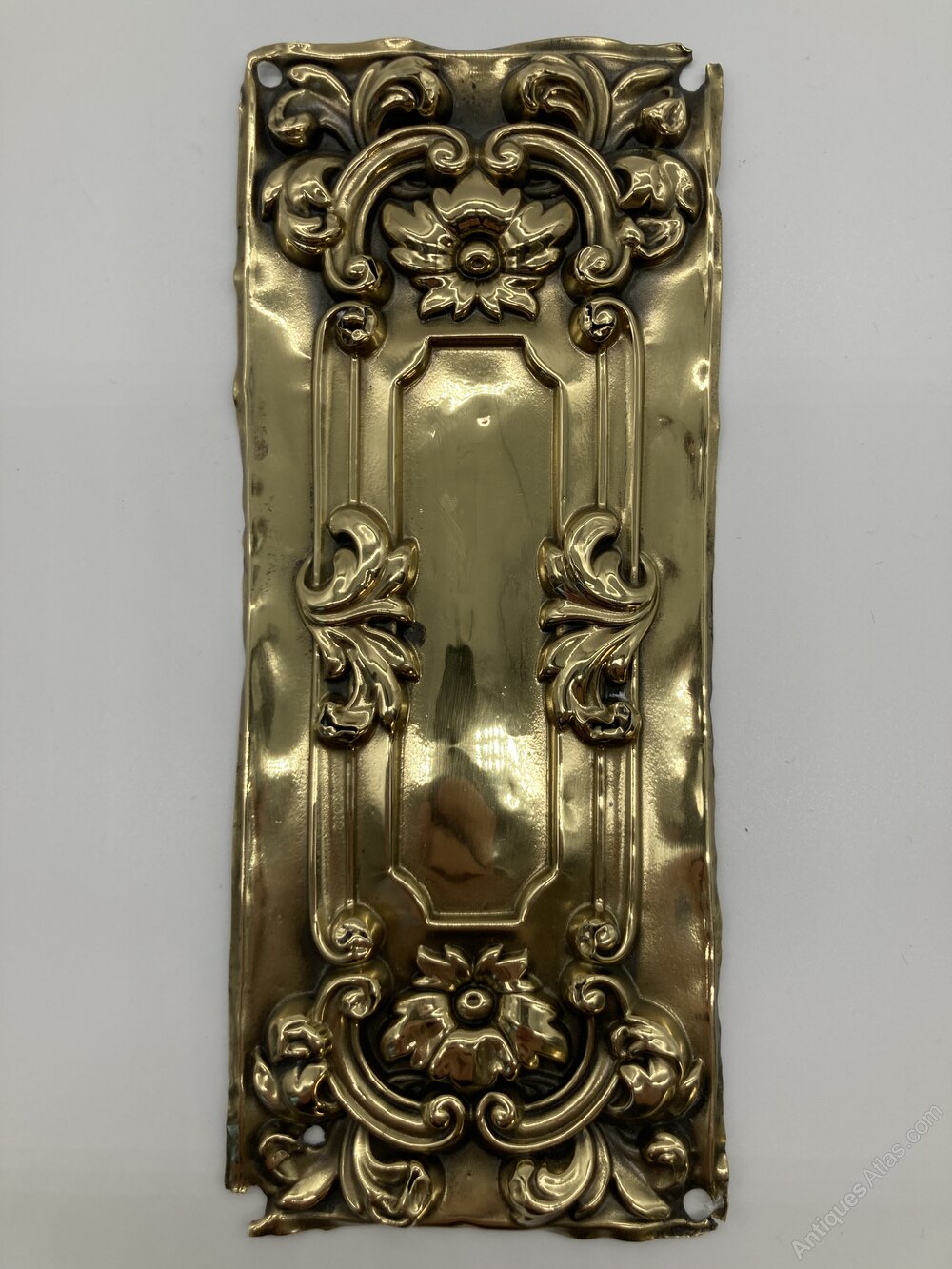 Condition Please note the brass has perished with age around the fixing holes and edge, however, it should be fine once fixed flat to a door.