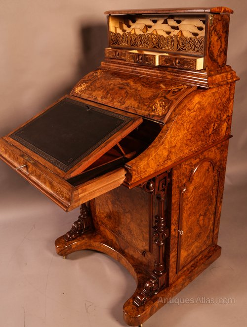 A Superb Victorian Burr Walnut "Jack in a Box" Davenport