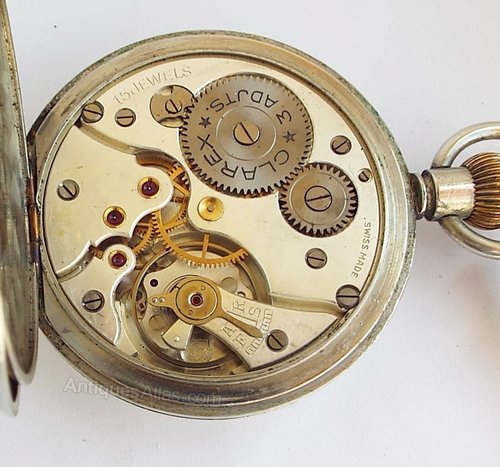 The watch has a nice quality stem-winding movement which is working well .The movement is stamped Clarex, 15 jewels, 3 Adjustments, Swiss made. The movement is protected by an inner hinged cover.