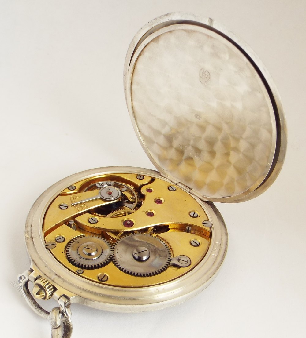 The watch has a nice quality jewelled stem-winding movement, which is working well. The movement is protected by an inner hinged cover.