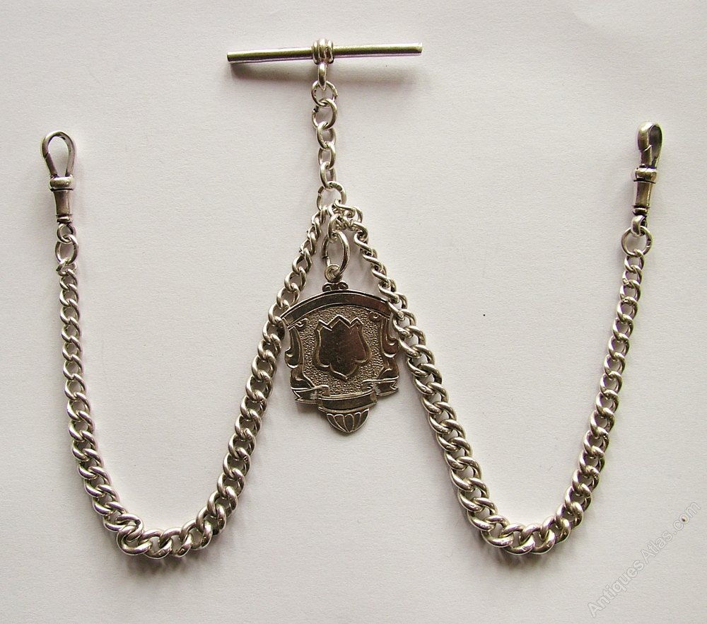 A vintage silver double watch chain and fob.