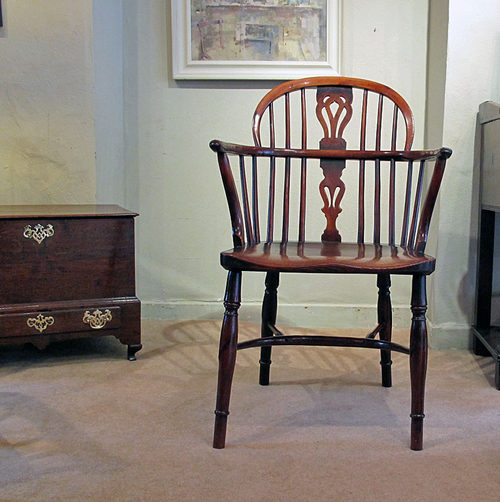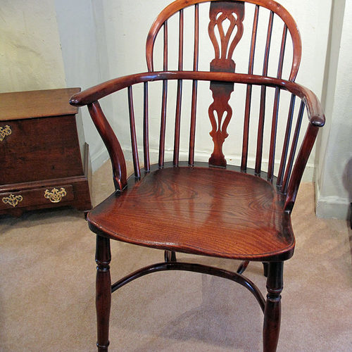 A really good example of an elegant country chair,with crinoline stretchers and pierced splats, . The seat, typically, is made of a single piece of elm, the remaining parts made entirely of yew, and so a wonderful colour and deep patina.
