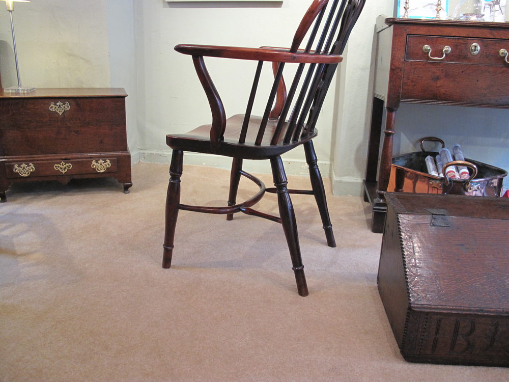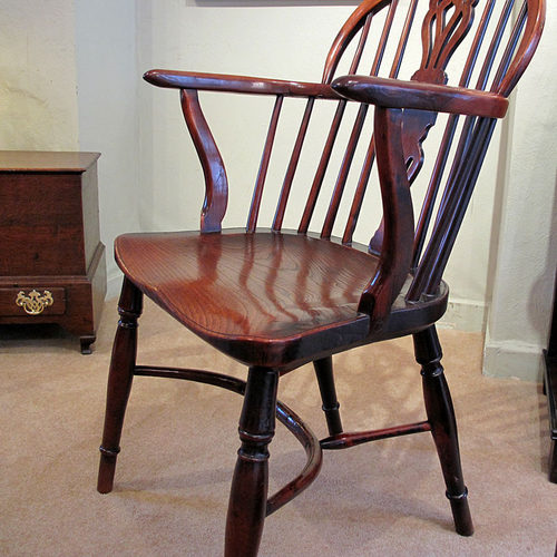 An early19thc yew wood low back Windsor Elbow Chair