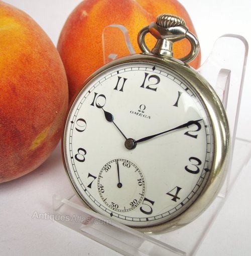 The watch itself measures 48mm diameter excluding the winding stem and the loop. The case is nickel and it has the early Omega logo to the inside of the back cover. The front of the case is in good condition, while there is some fairly gentle unevenness to the back.