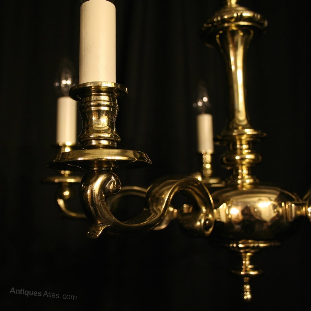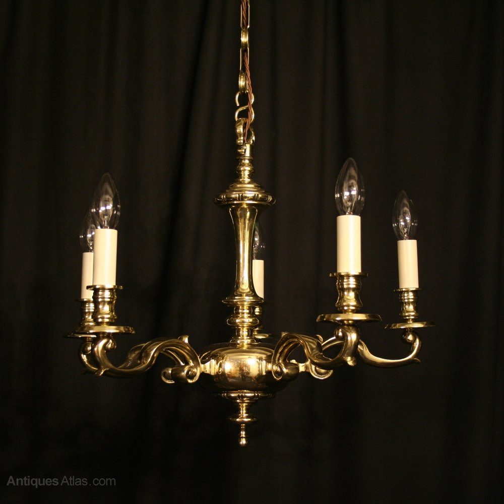 An English Brass 5 Light Antique Chandelier