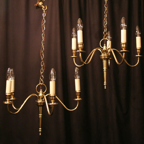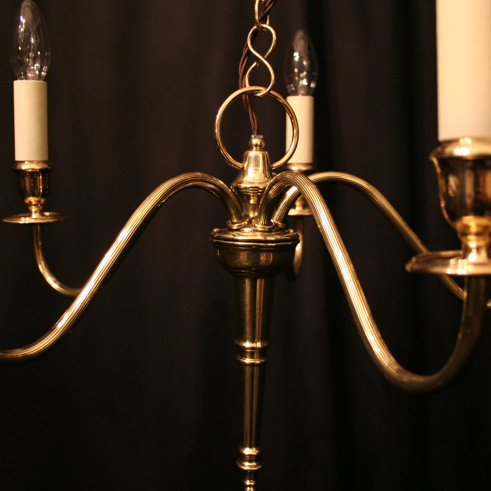 Early 20thC Dutch Brass 8 Arm Chandelier