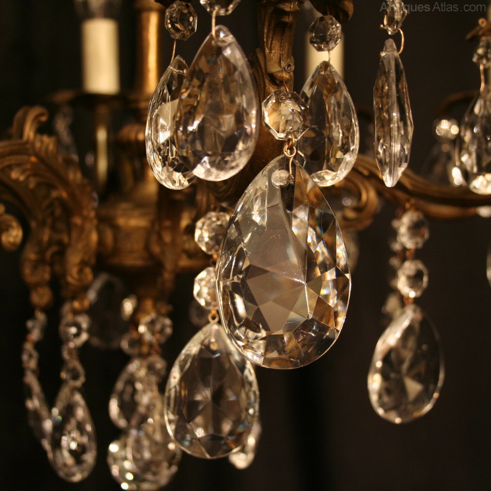 French Gilded 6 Light Antique Crystal Chandelier
