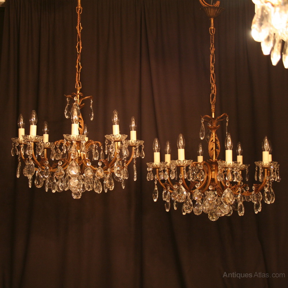 An Italian Pair Of 8 Light Antique Chandeliers