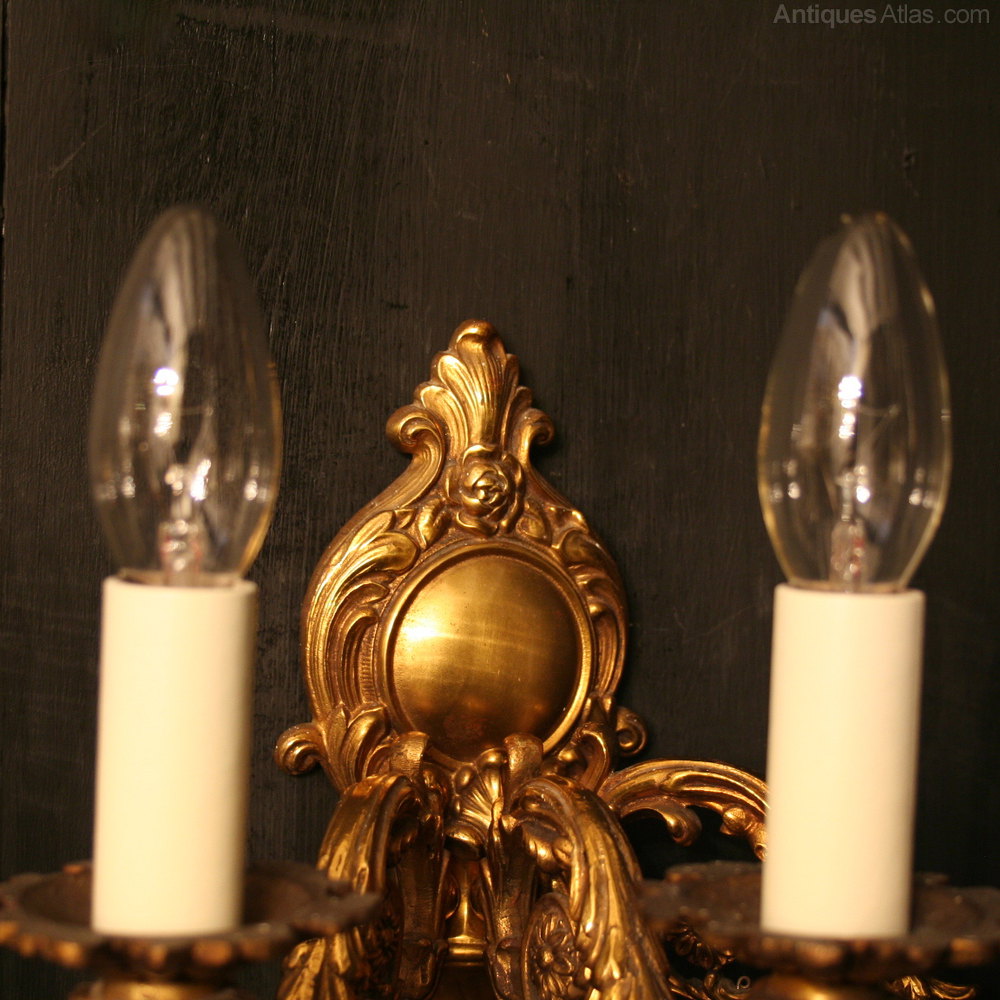 French Set Of 3 Bronze Twin Arm Wall Lights