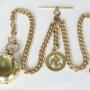 Antique 18ct rolled rose gold double watch chain and sovereign holder.