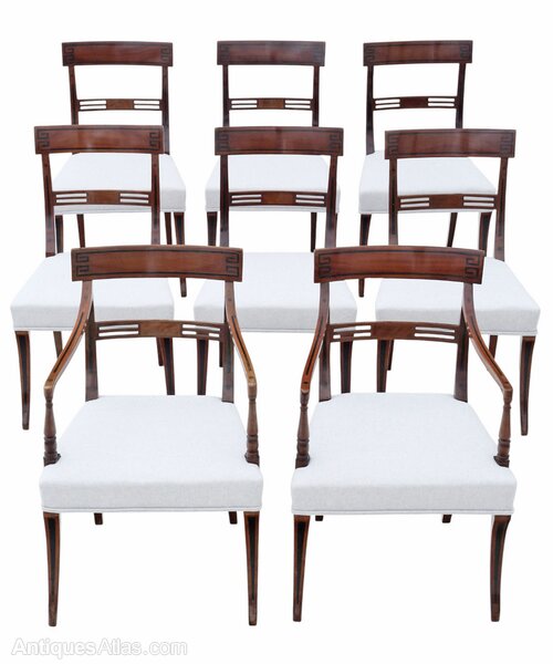 Antique Early 19th Century Georgian Regency Mahogany Dining & Carver Chairs – Set of 8, Fine Quality