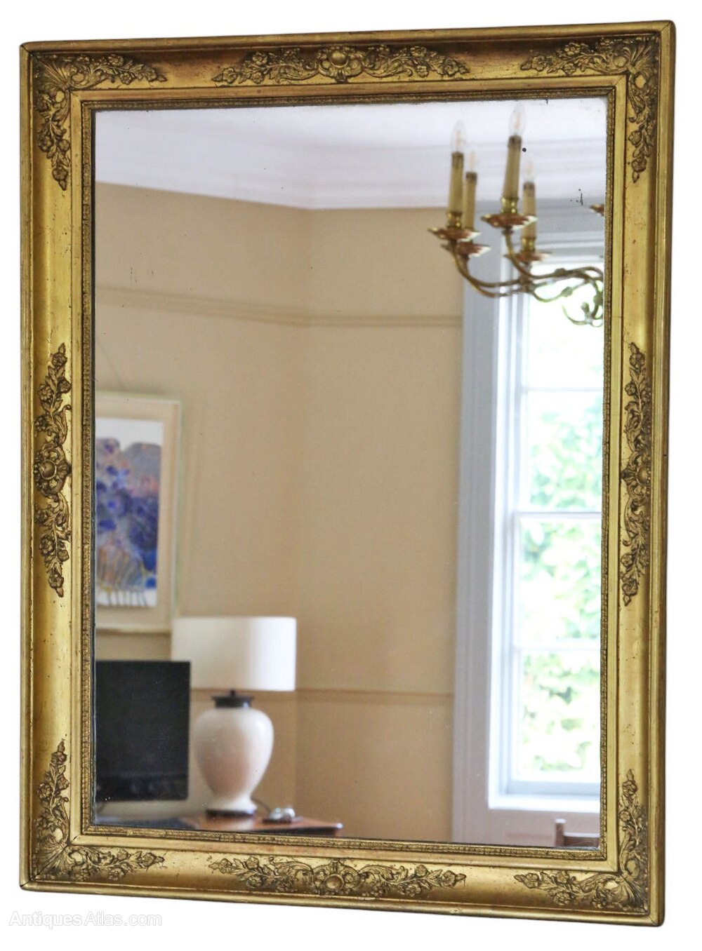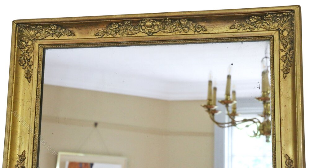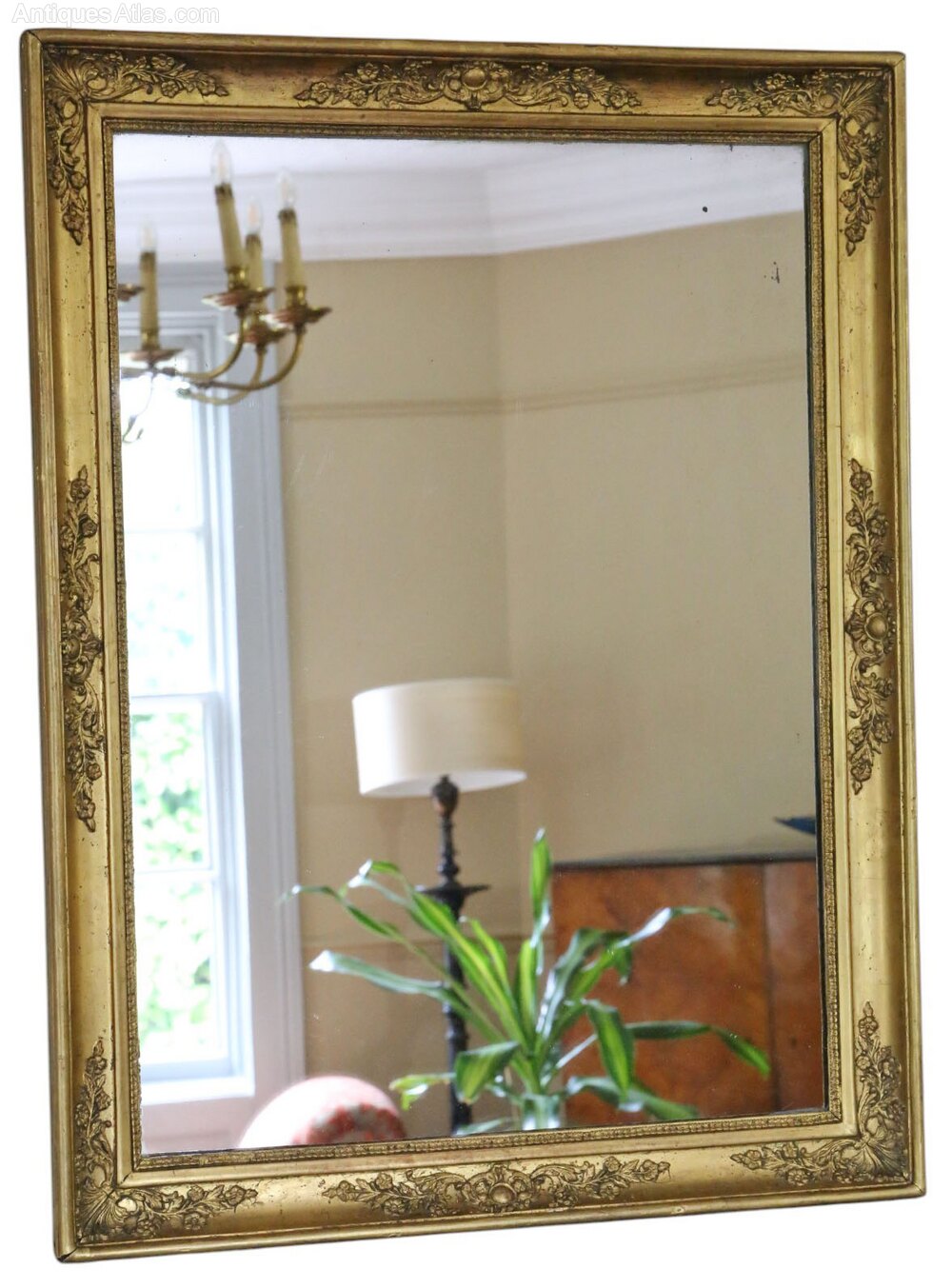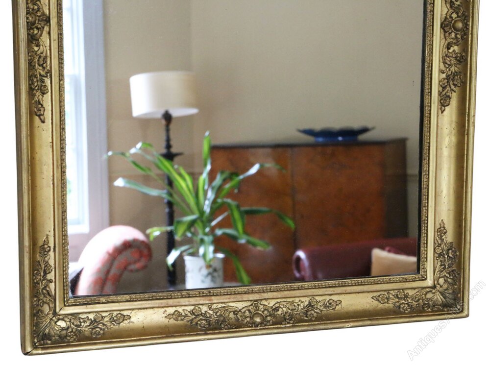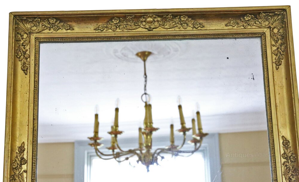 Antique 19th Century Large Gilt Overmantel Wall Mirror – Ornate Vintage Gold Frame