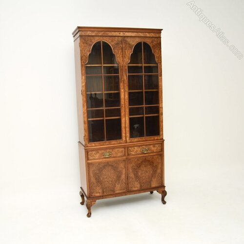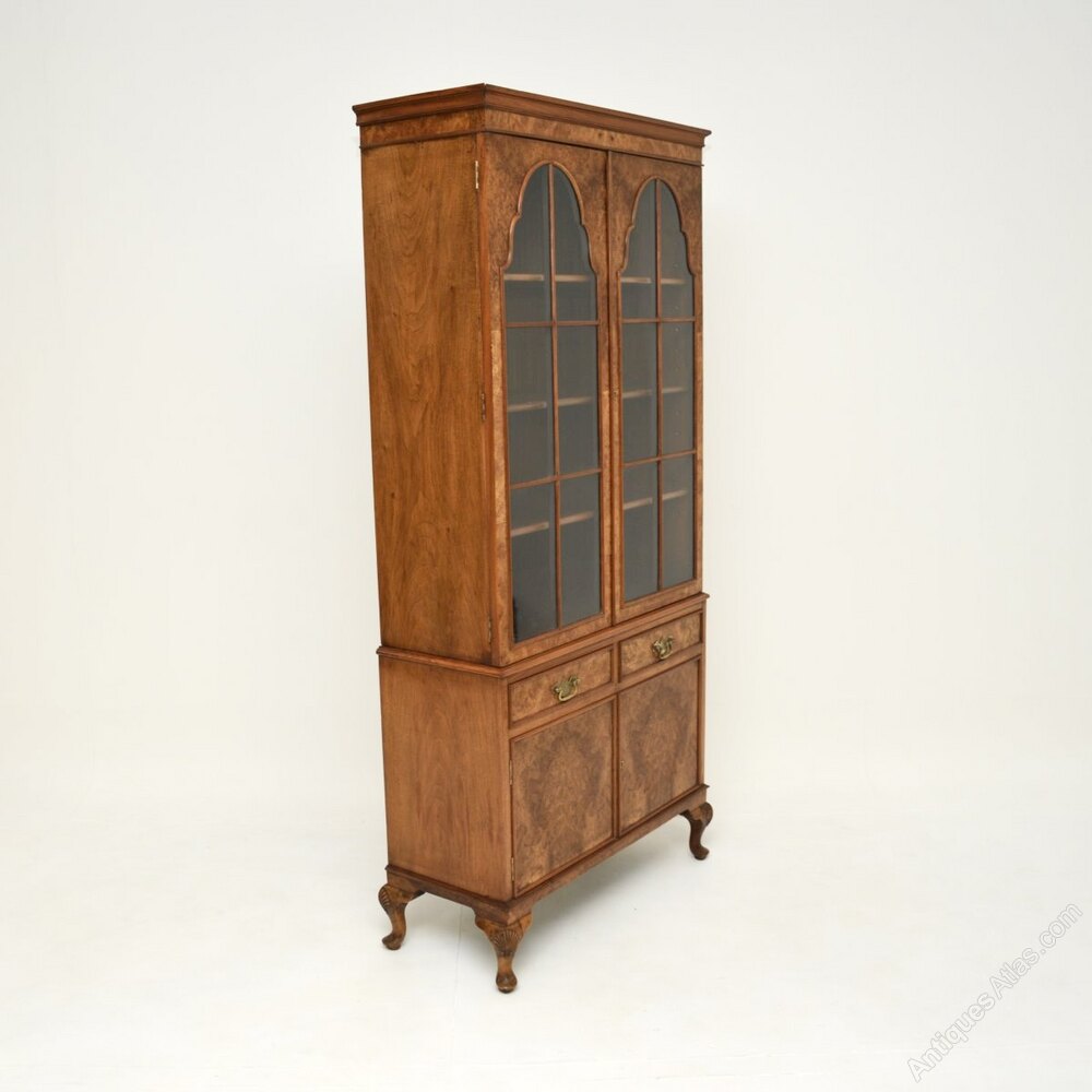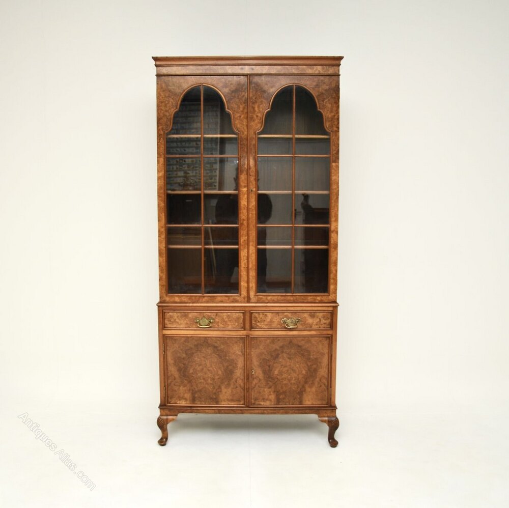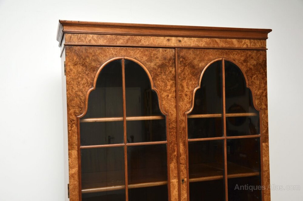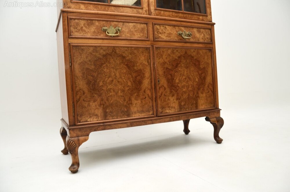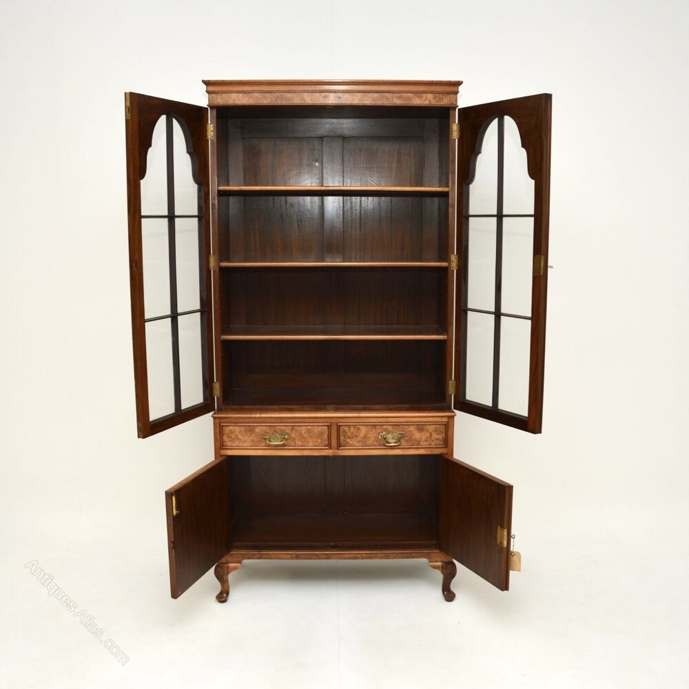 A beautiful antique burr walnut bookcase in the Georgian style. This was made in England, it dates from around the 1920’s.