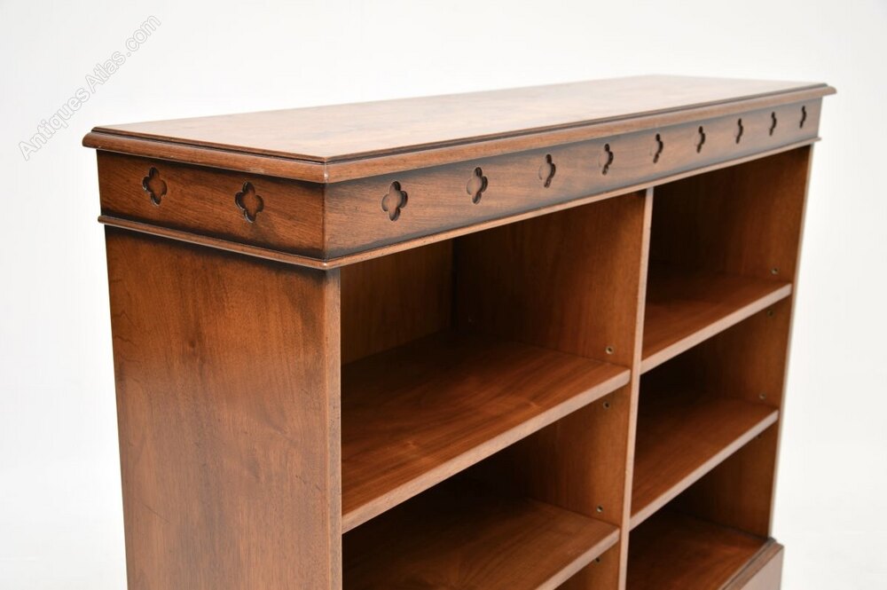 A lovely antique burr walnut open bookcase in the Victorian style. This was made in England, it dates from around the 1950’s.