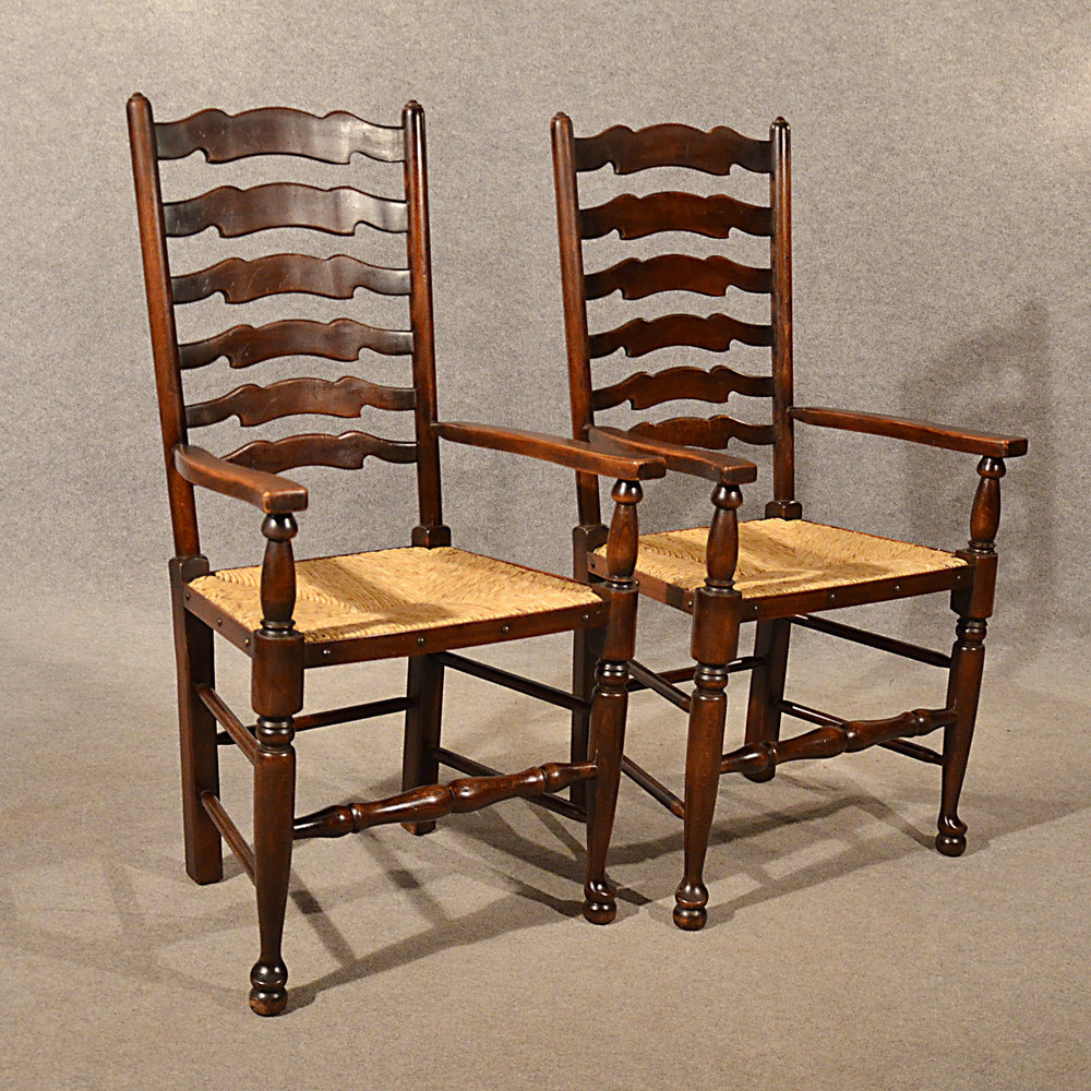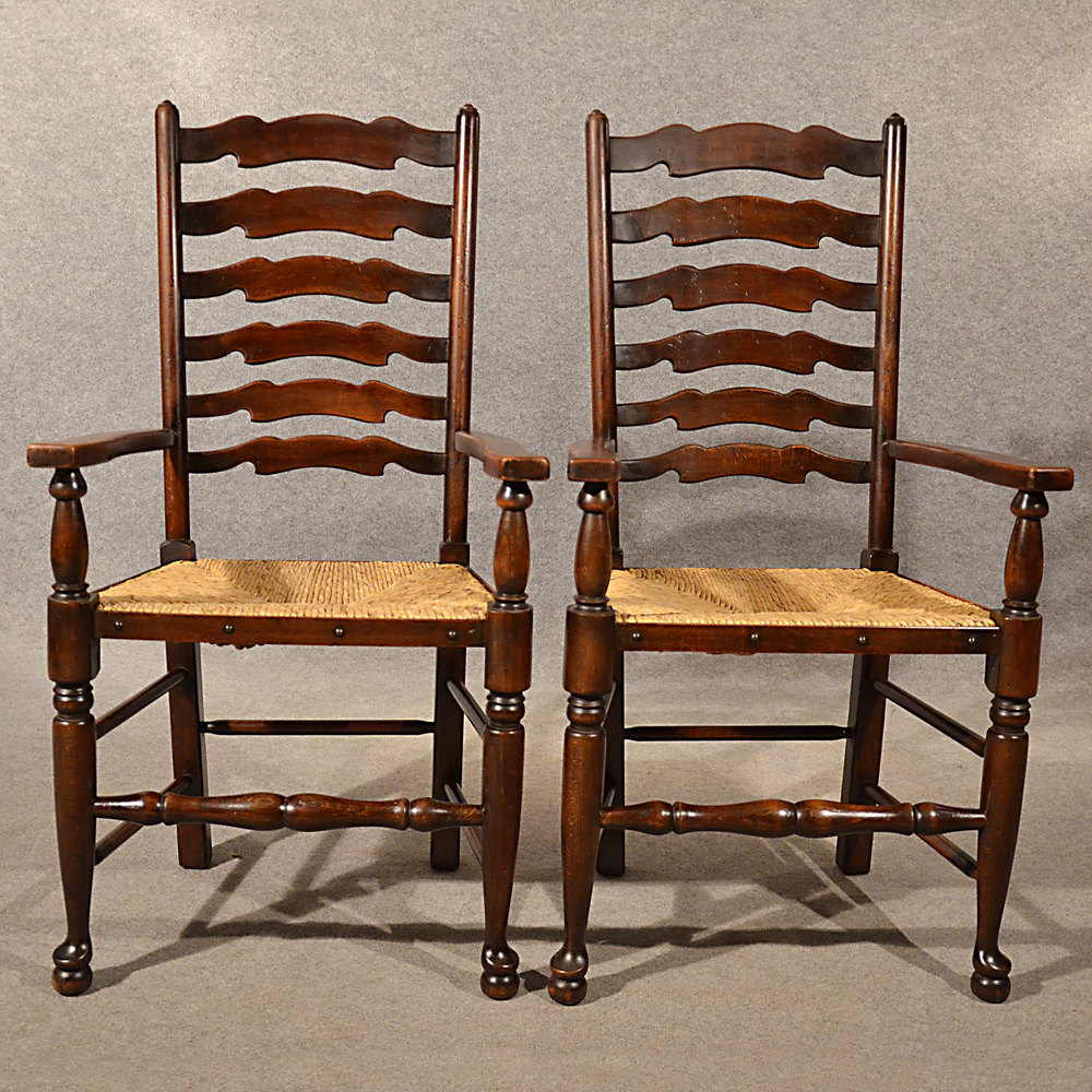 Quality Pair of Carver Chairs - Wavy Line Ladderback - c1910