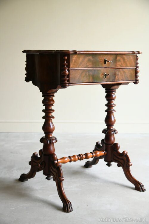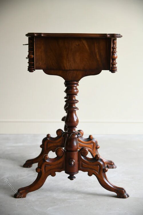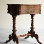 Victorian Inlaid Walnut Sewing Table with Stretcher