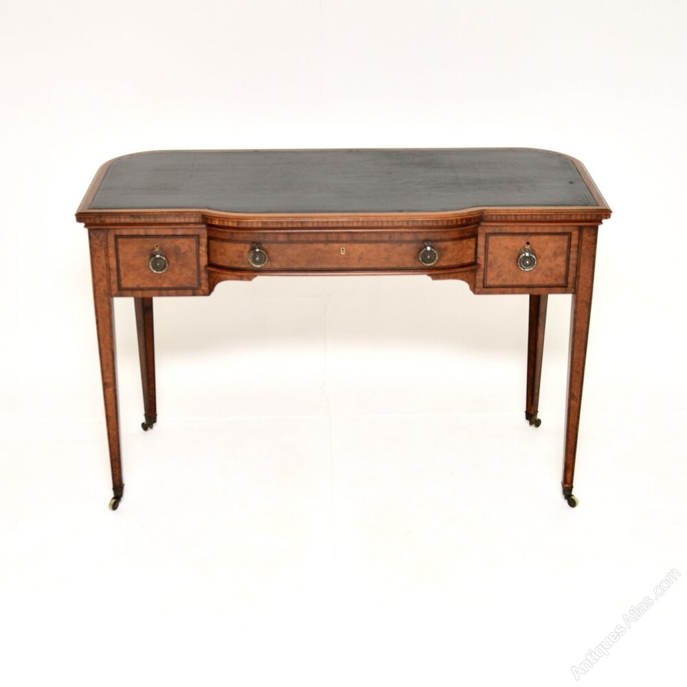 An outstanding antique Edwardian inlaid walnut desk / writing table. This was made in England, it dates from the 1900-1910 period.