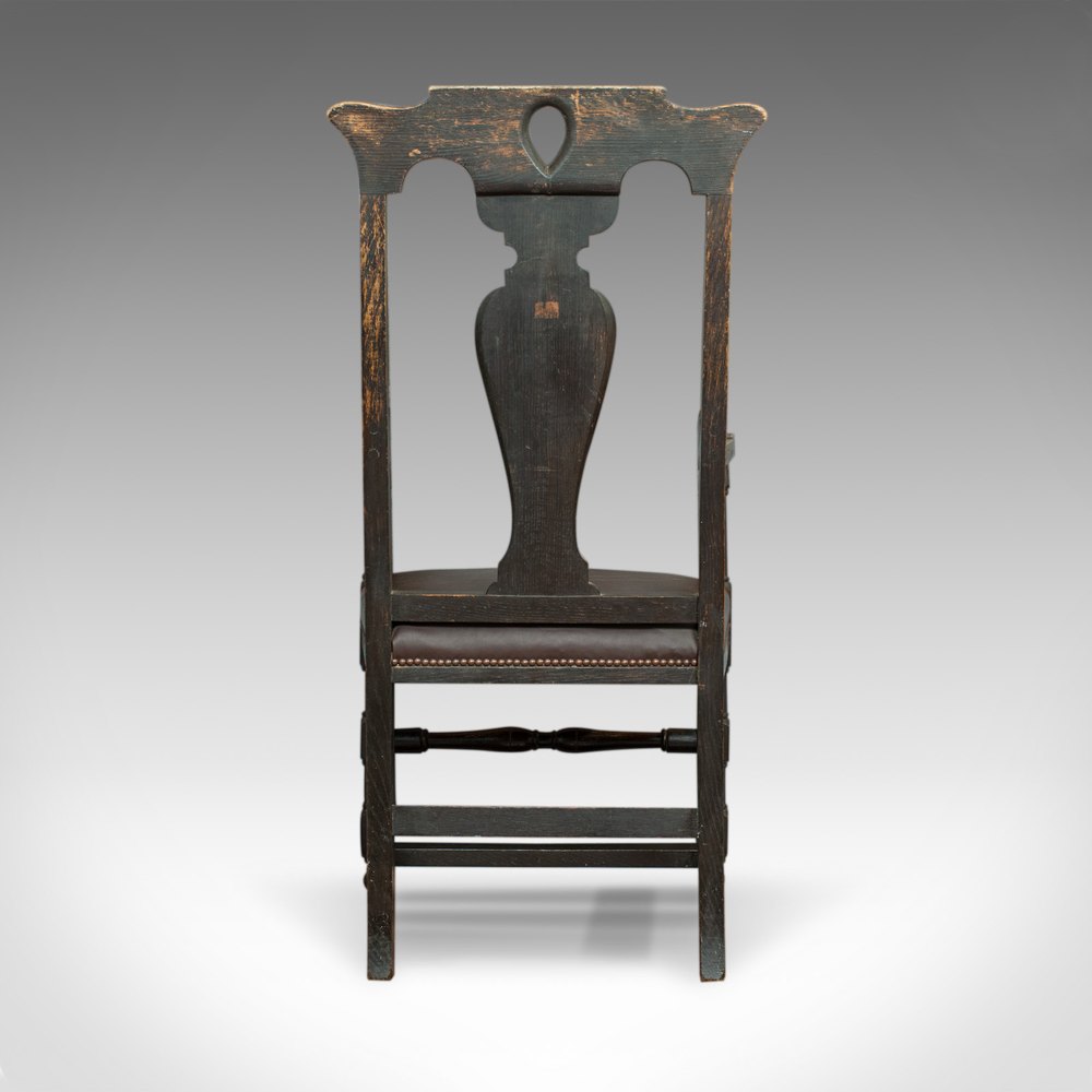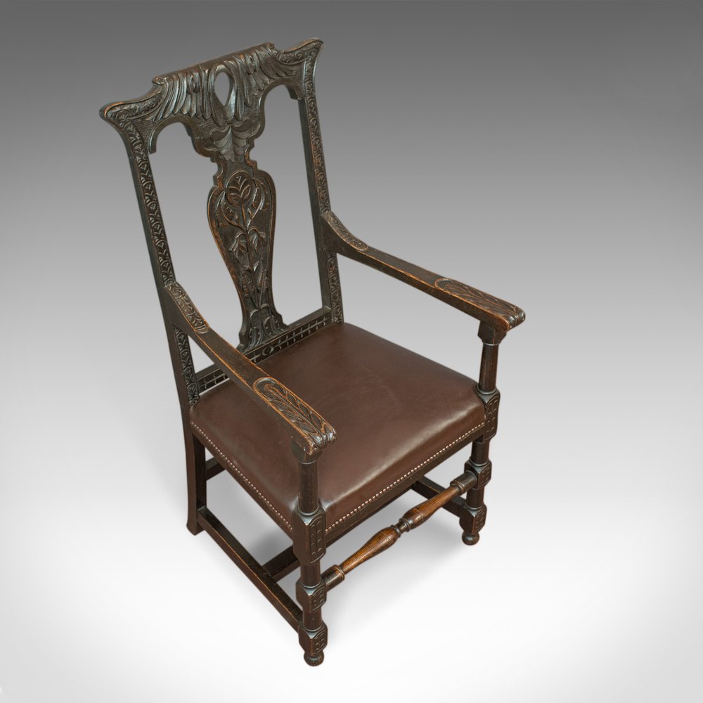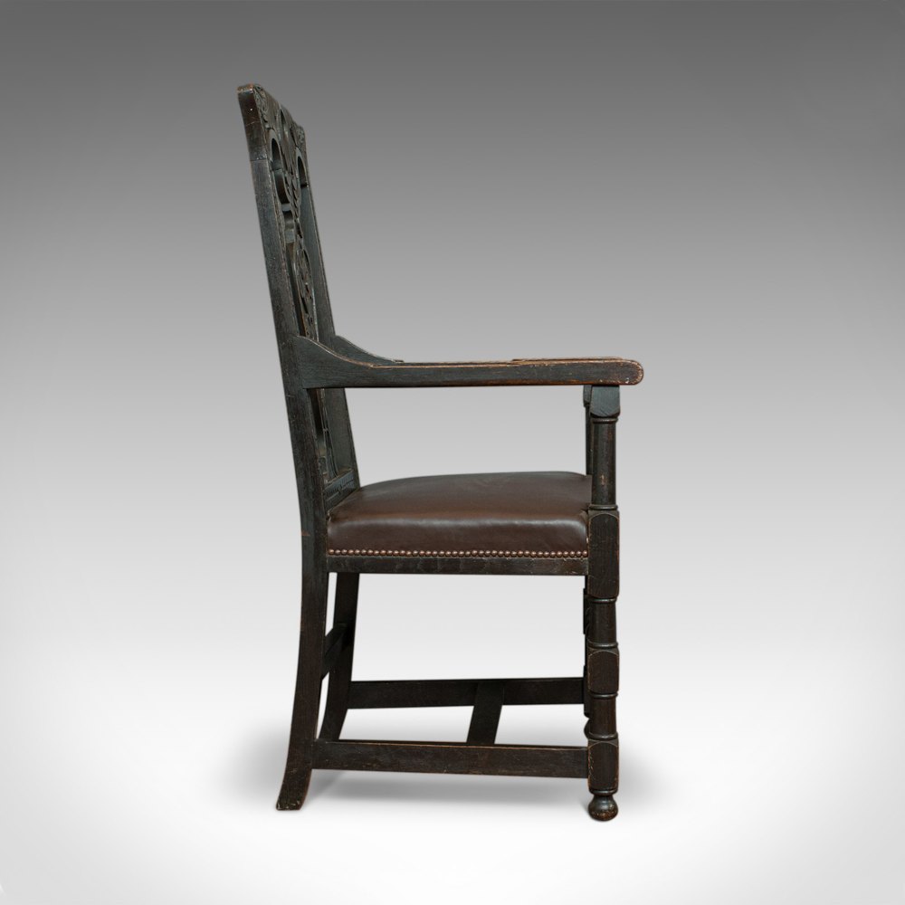 Antique Elbow Chair, Victorian, Oak, Leather.