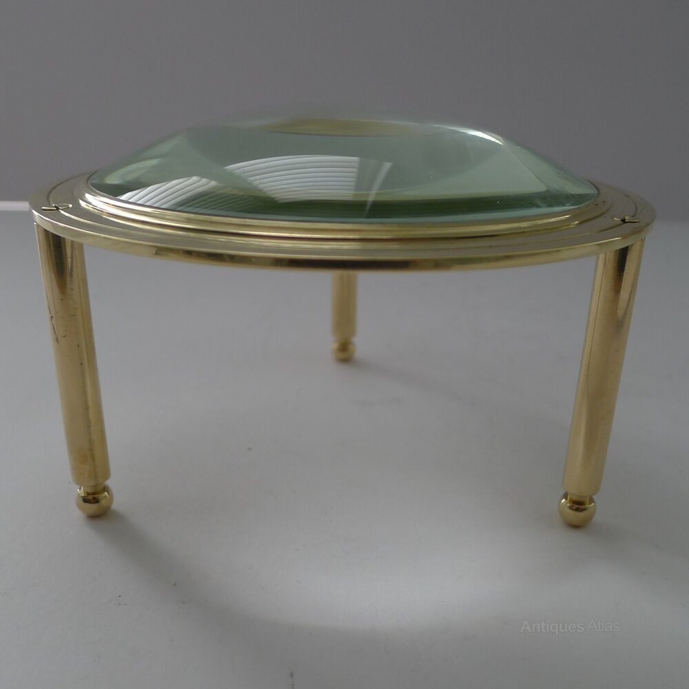 A handsome Edwardian desk / map magnifying glass, the frame made from cast English brass, professionally cleaned and polished, restoring it to it's former glory.