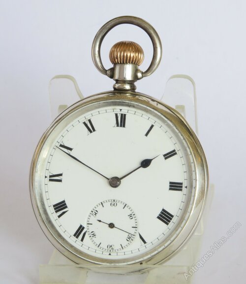 The watch measures 50mm diameter excluding the winding stem and the loop. The case is silver and there are hallmarks inside both of the case backs for Birmingham 1913, with a case maker’s mark for Aaron Dennison. The case is in good condition, just a light to the back and a hint of unevenness, nothing serious at all. The back of the watch has the initials ARR.