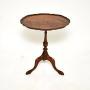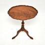 A beautiful antique figured walnut pie crust wine table. This was made in England, it dates from around the 1930’s period.