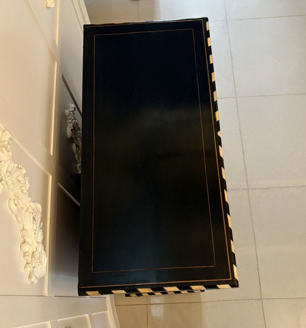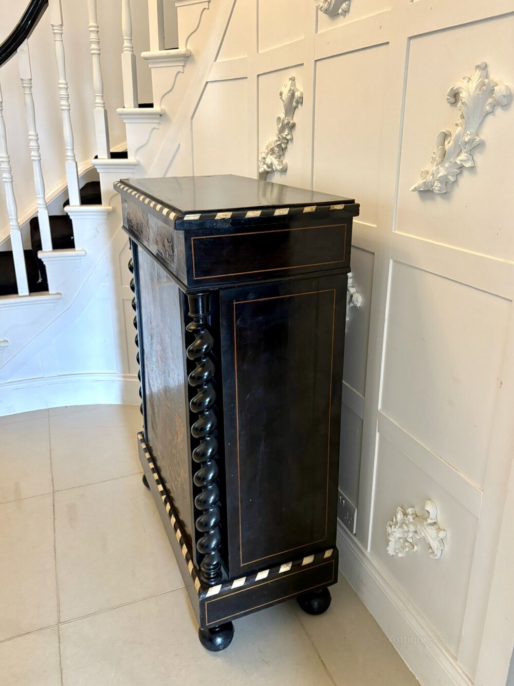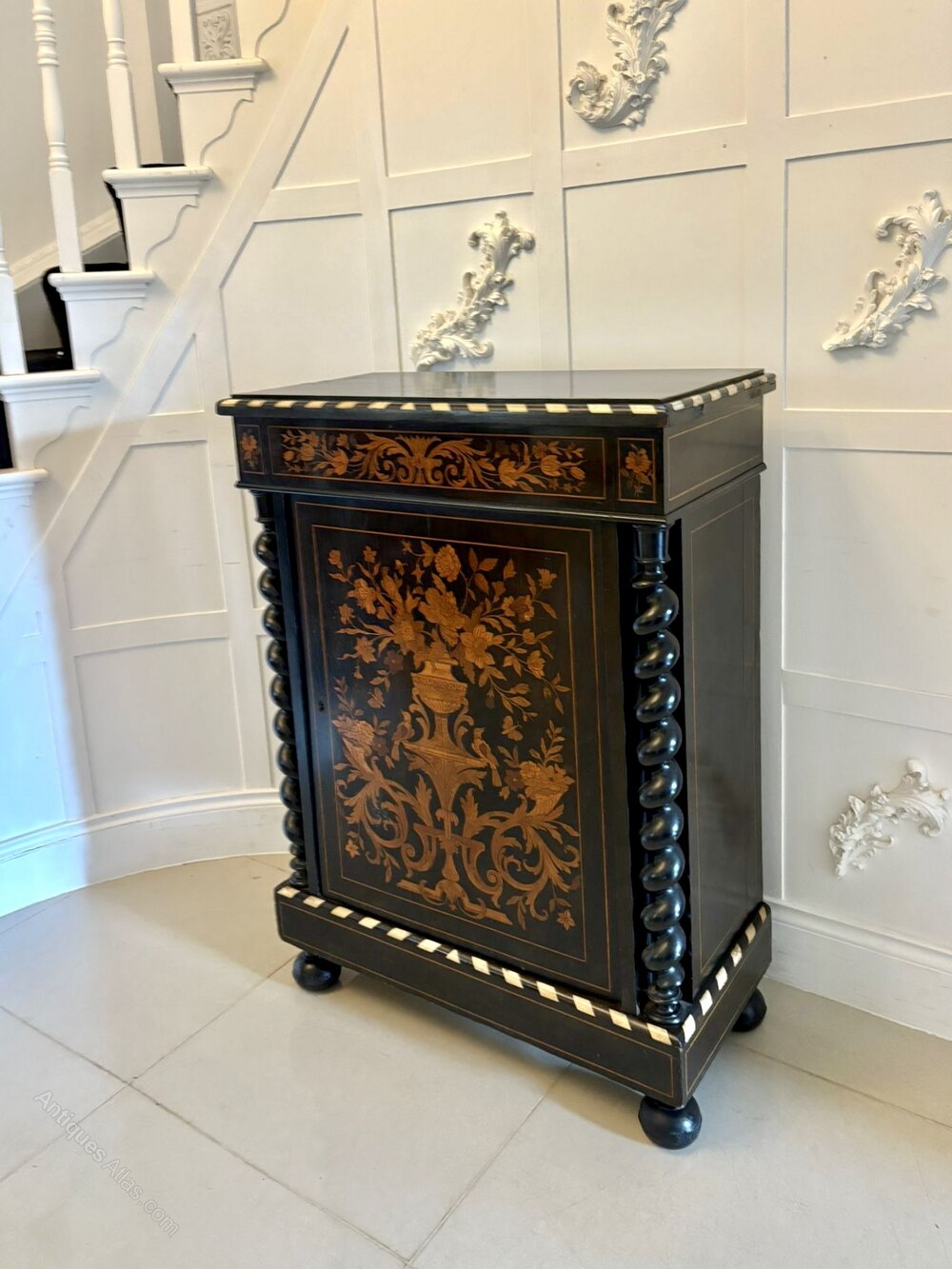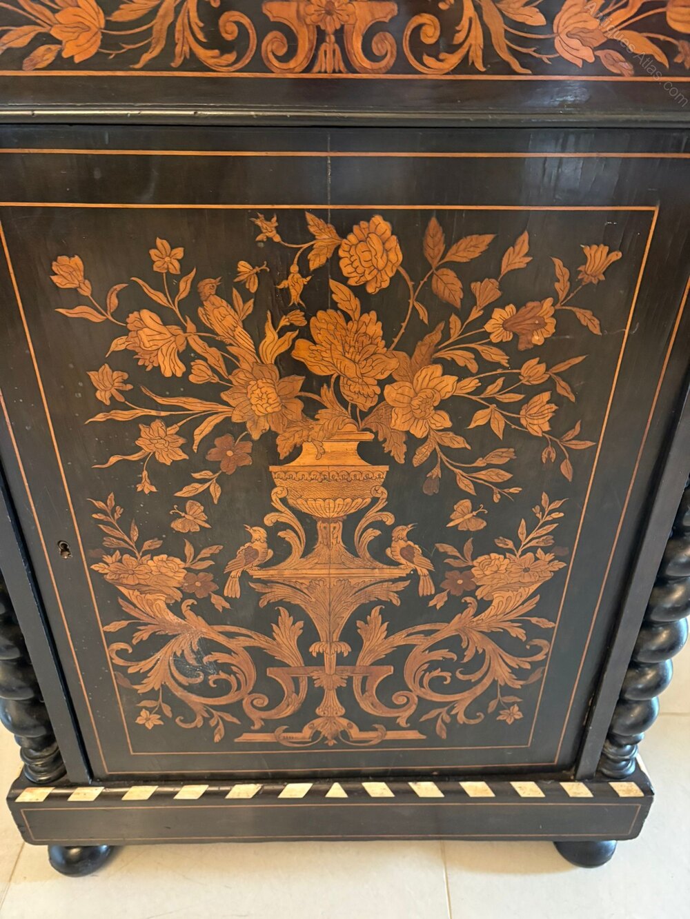 Antique Floral Marquetry and Ebonised Side Cabinet