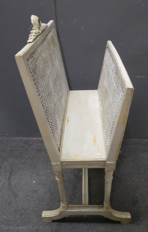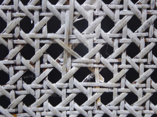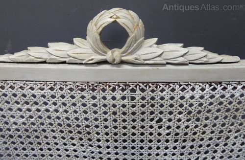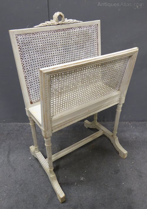 Ref 7075 - Antique French worn grey painted carved worn and cane Louis XVI style magazine/newspaper rack. Some repairs to cane (see close-ups). Circa 1900.