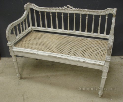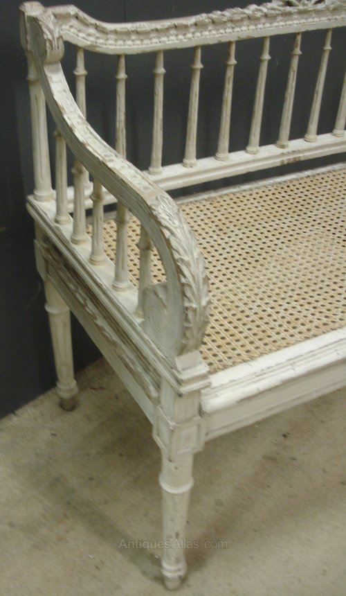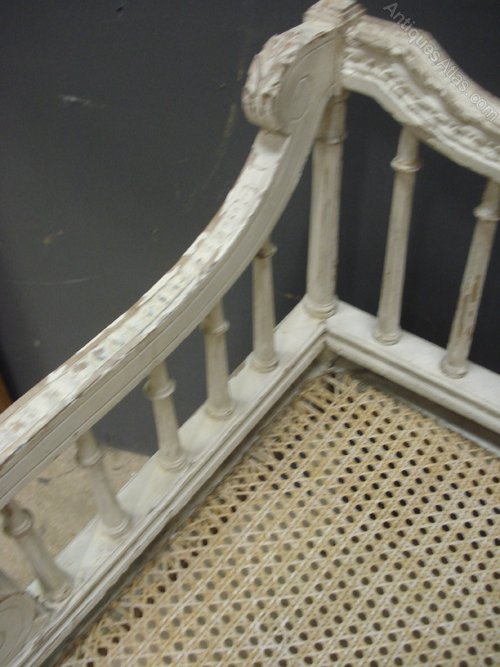 Ref 6103 - Antique French off white painted cane sofa. Needs recaning or upholstering. Tight joints but some legs are slightly turned in. Circa 1900.