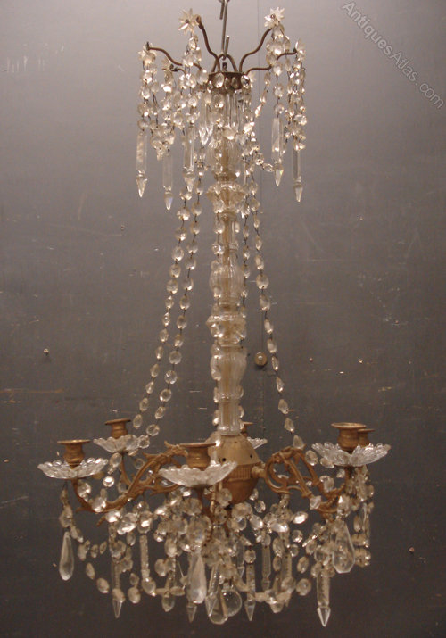 Ref 4603 - Napoleon III 6 arm brass chandelier with original clear crystals. Old wiring needs checking. Circa 1860.