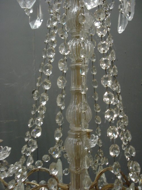 Ref 6174 - Antique French 6 arm brass and ormolu Napoleon III antique chandelier with original clear crystals. Cleaned and ready for candles or can be wired. Circa 1860.