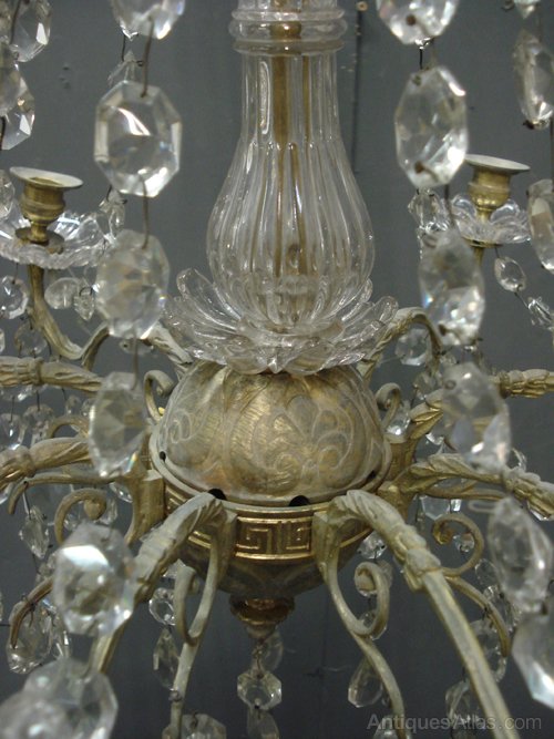 Ref 6558 - 19th Century French large brass 9 arm Napoleon III antique chandelier. Original clear crystals. For candles or can be wired. Circa 1860.